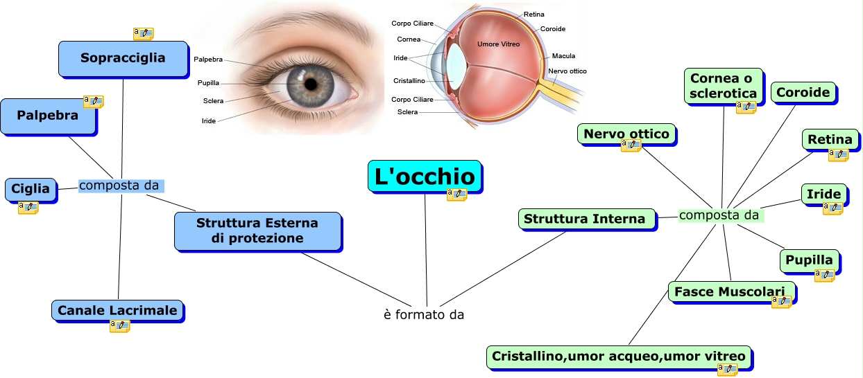 Questa Cmap, creata con IHMC CmapTools, contiene informazioni relative a: L'occhio, Struttura Interna composta da Cristallino,umor acqueo,umor vitreo, Struttura Esterna di protezione composta da Ciglia, Struttura Interna composta da Nervo ottico, Struttura Interna composta da Cornea o sclerotica, Struttura Esterna di protezione composta da Canale Lacrimale, Struttura Interna composta da Retina, Struttura Interna composta da Coroide, Struttura Esterna di protezione composta da Palpebra, Struttura Interna composta da Fasce Muscolari, L'occhio è formato da Struttura Interna, Struttura Interna composta da Pupilla, Struttura Esterna di protezione composta da Sopracciglia, Struttura Interna composta da Iride, L'occhio è formato da Struttura Esterna di protezione