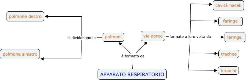 Questa Cmap, creata con IHMC CmapTools, contiene informazioni relative a: apparato respiratorio, vie aeree formate a loro volta da trachea, vie aeree formate a loro volta da bronchi, vie aeree formate a loro volta da cavità nasali, polmoni si dividonono in polmone destro, APPARATO RESPIRATORIO è formato da vie aeree, APPARATO RESPIRATORIO è formato da polmoni, polmoni si dividonono in polmone sinistro, vie aeree formate a loro volta da faringe, vie aeree formate a loro volta da laringe