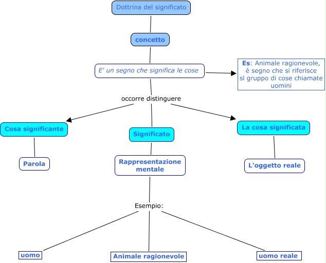 Questa Cmap, creata con IHMC CmapTools, contiene informazioni relative a: Dottrina significato, Dottrina del significato concetto, E' un segno che significa le cose occorre distinguere Significato, Rappresentazione mentale Esempio: Animale ragionevole, E' un segno che significa le cose occorre distinguere La cosa significata, Cosa significante Parola, E' un segno che significa le cose occorre distinguere Cosa significante, La cosa significata L'oggetto reale, concetto E' un segno che significa le cose, Significato Rappresentazione mentale, Rappresentazione mentale Esempio: uomo reale, Rappresentazione mentale Esempio: uomo, E' un segno che significa le cose Es: Animale ragionevole, è segno che si riferisce sl gruppo di cose chiamate uomini