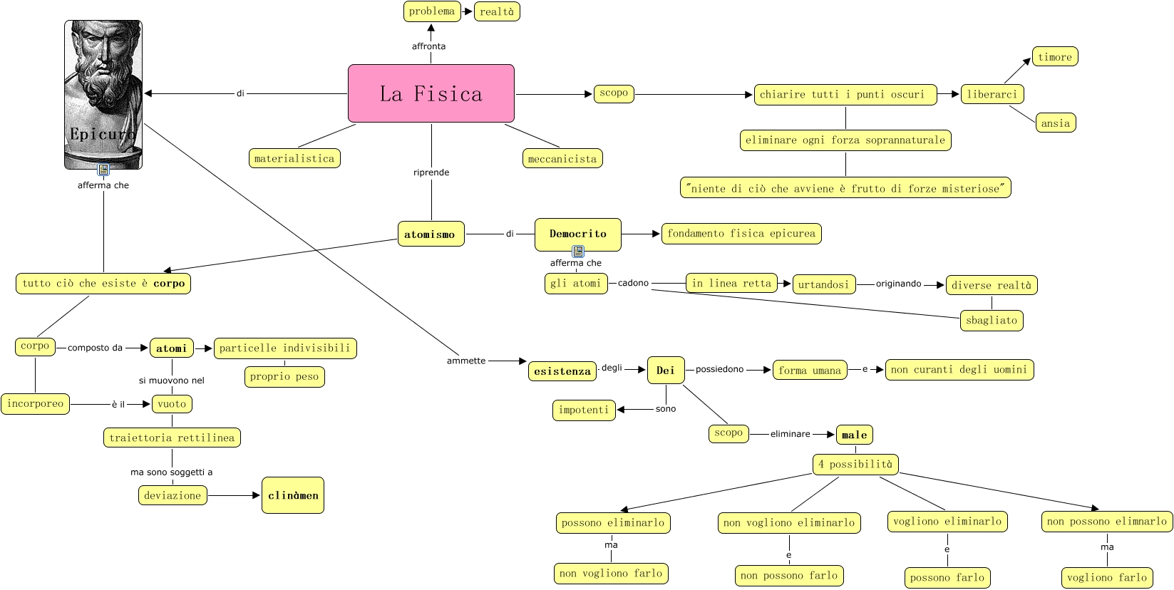 Questa Cmap, creata con IHMC CmapTools, contiene informazioni relative a: la fisica di Epicuro, male 4 possibilità, Dei sono impotenti, scopo eliminare male, urtandosi originando diverse realtà, problema realtà, deviazione clinàmen, Democrito afferma che gli atomi, liberarci ansia, La Fisica riprende atomismo, Epicuro afferma che tutto ciò che esiste è corpo, sbagliato cadono urtandosi, traiettoria rettilinea ma sono soggetti a deviazione, atomismo tutto ciò che esiste è corpo, atomi particelle indivisibili, La Fisica scopo, La Fisica meccanicista, scopo chiarire tutti i punti oscuri, Dei possiedono forma umana, forma umana e non curanti degli uomini, 4 possibilità possono eliminarlo