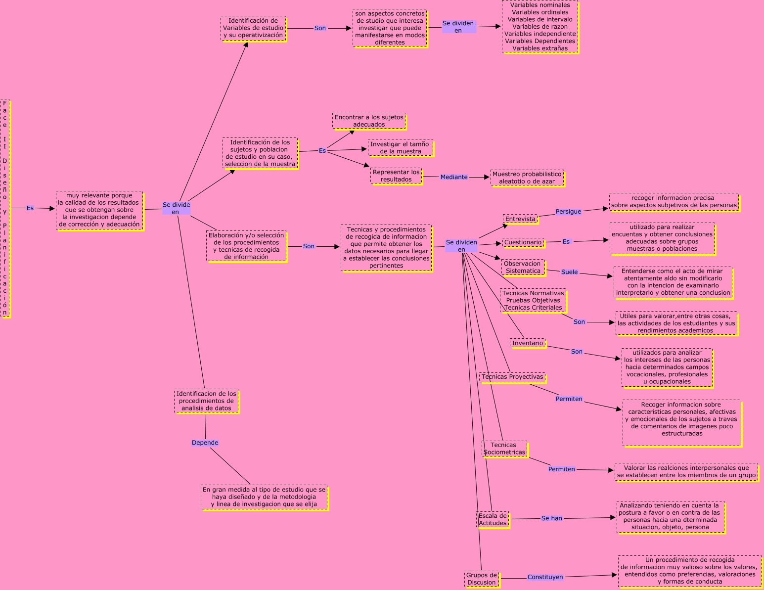 Este Cmap, tiene información relacionada con: Face II Diseño y Planificacion, F a c e I I D i s e ñ o y P l a n i f i c a c i ó n Es muy relevante porque la calidad de los resultados que se obtengan sobre la investigacion depende de corrección y adecuación, Identificación de los sujetos y poblacion de estudio en su caso, seleccion de la muestra Es Representar los resultados, Entrevista Persigue recoger informacion precisa sobre aspectos subjetivos de las personas, Tecnicas y procedimientos de recogida de informacion que permite obtener los datos necesarios para llegar a establecer las conclusiones pertinentes Se dividen en Grupos de Discusion, Tecnicas y procedimientos de recogida de informacion que permite obtener los datos necesarios para llegar a establecer las conclusiones pertinentes Se dividen en Entrevista, Tecnicas y procedimientos de recogida de informacion que permite obtener los datos necesarios para llegar a establecer las conclusiones pertinentes Se dividen en Tecnicas Proyectivas, son aspectos concretos de studio que interesa investigar que puede manifestarse en modos diferentes Se dividen en Variables nominales Variables ordinales Variables de intervalo Variables de razon Variables independiente Variables Dependientes Variables extrañas, Escala de Actitudes Se han Analizando teniendo en cuenta la postura a favor o en contra de las personas hacia una dterminada situacion, objeto, persona, Representar los resultados Mediante Muestreo probabilistico aleatotio o de azar, Tecnicas y procedimientos de recogida de informacion que permite obtener los datos necesarios para llegar a establecer las conclusiones pertinentes Se dividen en Tecnicas Sociometricas, Tecnicas Proyectivas Permiten Recoger informacion sobre caracteristicas personales, afectivas y emocionales de los sujetos a traves de comentarios de imagenes poco estructuradas, Elaboración y/o selección de los procedimientos y tecnicas de recogida de información Son Tecnicas y procedimientos de recogida de informacion que permite obtener los datos necesarios para llegar a establecer las conclusiones pertinentes, Tecnicas y procedimientos de recogida de informacion que permite obtener los datos necesarios para llegar a establecer las conclusiones pertinentes Se dividen en Cuestionario, Tecnicas y procedimientos de recogida de informacion que permite obtener los datos necesarios para llegar a establecer las conclusiones pertinentes Se dividen en Tecnicas Normativas Pruebas Objetivas Tecnicas Criteriales, Grupos de Discusion Constituyen Un procedimiento de recogida de informacion muy valioso sobre los valores, entendidos como preferencias, valoraciones y formas de conducta, Identificación de los sujetos y poblacion de estudio en su caso, seleccion de la muestra Es Encontrar a los sujetos adecuados, Tecnicas y procedimientos de recogida de informacion que permite obtener los datos necesarios para llegar a establecer las conclusiones pertinentes Se dividen en Observacion Sistematica, Identificación de los sujetos y poblacion de estudio en su caso, seleccion de la muestra Es Investigar el tamño de la muestra, Observacion Sistematica Suele Entenderse como el acto de mirar atentamente aldo sin modificarlo con la intencion de examinarlo interpretarlo y obtener una conclusion, Tecnicas y procedimientos de recogida de informacion que permite obtener los datos necesarios para llegar a establecer las conclusiones pertinentes Se dividen en Inventario