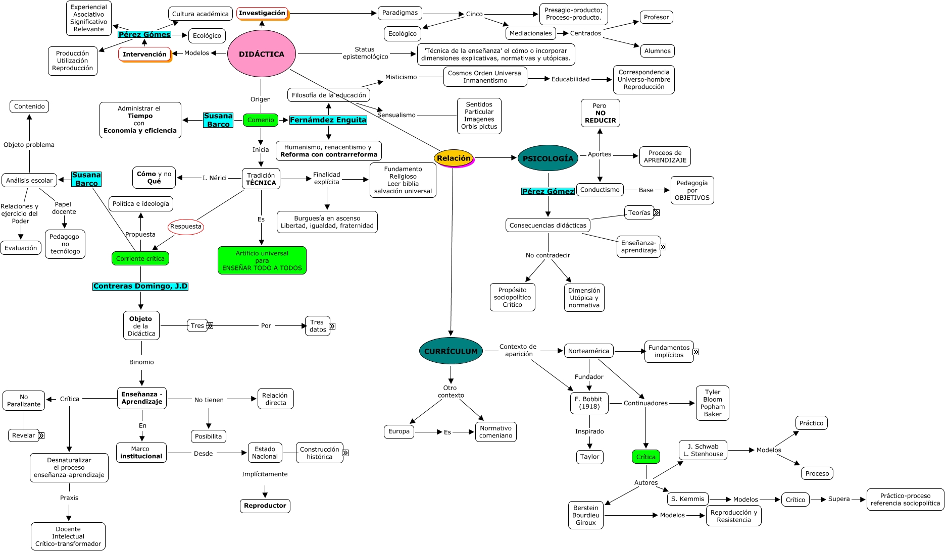 Este Cmap, tiene información relacionada con: Didactica U1, Crítica Autores J. Schwab L. Stenhouse, Enseñanza - Aprendizaje No tienen Relación directa, Estado Nacional Implícitamente Reproductor, Comenio Inicia Tradición TÉCNICA, Estado Nacional No Neutro Republicano, DIDÁCTICA Status epistemológico 'Técnica de la enseñanza' el cómo o incorporar dimensiones explicativas, normativas y utópicas., Objeto de la Didáctica 3 y no 1 Intervenir, Corriente crítica Susana Barco Análisis escolar, Tradición TÉCNICA Finalidad explícita Burguesía en ascenso Libertad, igualdad, fraternidad, Asociacionistas Aprendizaje Modelo caja negra, Conductismo Base Pedagogía por OBJETIVOS, Crítica Autores S. Kemmis, Intervención Pérez Gómes Experiencial Asociativo Significativo Relevante, Objeto de la Didáctica Binomio Enseñanza - Aprendizaje, Berstein Bourdieu Giroux Modelos Reproducción y Resistencia, No Paralizante Por qué Distribución alumnado, CURRÍCULUM Contexto de aparición F. Bobbit (1918), Paradigmas Cinco Presagio-producto; Proceso-producto., Comenio Fernámdez Enguita Humanismo, renacentismo y Reforma con contrarreforma, Filosofía de la educación Sensualismo Sentidos Particular Imagenes Orbis pictus