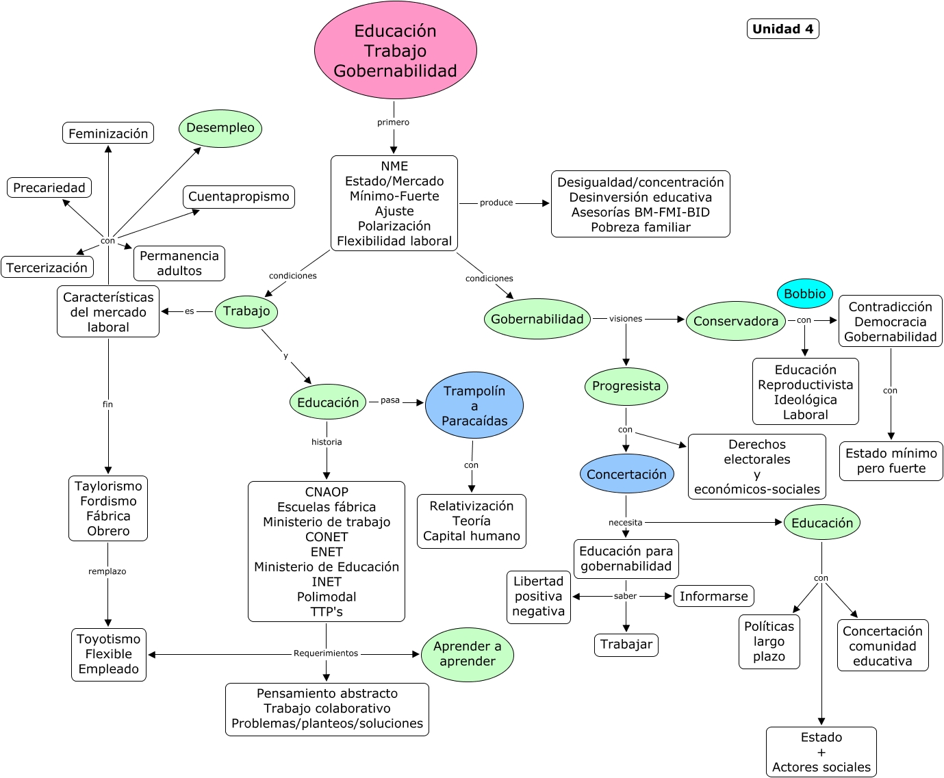 Este Cmap, tiene información relacionada con: Unidad 4, Educación con Concertación comunidad educativa, Educación pasa Trampolín a Paracaídas, Educación para gobernabilidad saber Trabajar, Características del mercado laboral fin Taylorismo Fordismo Fábrica Obrero, Educación con Políticas largo plazo, Progresista con Derechos electorales y económicos-sociales, Trampolín a Paracaídas con Relativización Teoría Capital humano, Características del mercado laboral con Desempleo, Concertación necesita Educación para gobernabilidad, Características del mercado laboral con Cuentapropismo, Taylorismo Fordismo Fábrica Obrero remplazo Toyotismo Flexible Empleado, Gobernabilidad visiones Conservadora, NME Estado/Mercado Mínimo-Fuerte Ajuste Polarización Flexibilidad laboral condiciones Trabajo, NME Estado/Mercado Mínimo-Fuerte Ajuste Polarización Flexibilidad laboral condiciones Gobernabilidad, Educación Trabajo Gobernabilidad primero NME Estado/Mercado Mínimo-Fuerte Ajuste Polarización Flexibilidad laboral, Características del mercado laboral con Tercerización, Conservadora con Educación Reproductivista Ideológica Laboral, CNAOP Escuelas fábrica Ministerio de trabajo CONET ENET Ministerio de Educación INET Polimodal TTP's Requerimientos Pensamiento abstracto Trabajo colaborativo Problemas/planteos/soluciones, Características del mercado laboral con Feminización, Concertación necesita Educación
