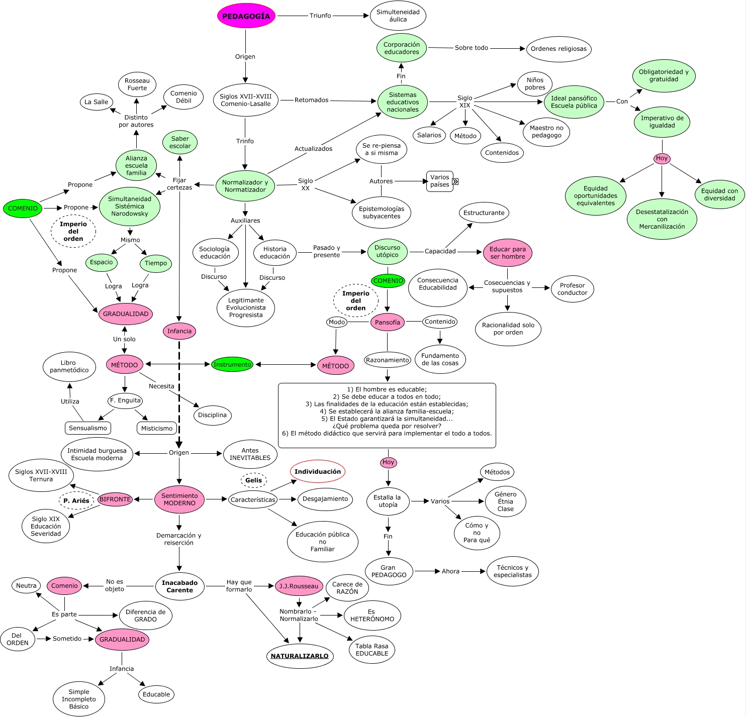 Este Cmap, tiene información relacionada con: Pedagogía U 1-3-6, COMENIO Propone Simultaneidad Sistémica Narodowsky, Discurso utópico COMENIO Pansofía, Se re-piensa a si misma Autores Durkheim, J.J.Rousseau Nombrarlo - Normalizarlo Es HETERÓNOMO, Corporación educadores Sobre todo Ordenes religiosas, Sentimiento MODERNO Demarcación y reiserción Inacabado Carente, Normalizador y Normatizador Siglo XX Epistemologías subyacentes, Comenio Es parte Neutra, Alianza escuela familia Distinto por autores Rosseau Fuerte, Sistemas educativos nacionales Siglo XIX Salarios, Imperativo de igualdad Hoy Equidad oportunidades equivalentes, Normalizador y Normatizador Fijar certezas Simultaneidad Sistémica Narodowsky, Se re-piensa a si misma Autores Natorp, Inacabado Carente Hay que formarlo J.J.Rousseau, Gran PEDAGOGO Ahora Técnicos y especialistas, Normalizador y Normatizador Actualizados Sistemas educativos nacionales, COMENIO Propone Alianza escuela familia, Sociología educación Discurso Legitimante Evolucionista Progresista, Pansofía Modo MÉTODO, Inacabado Carente Hay que formarlo NATURALIZARLO