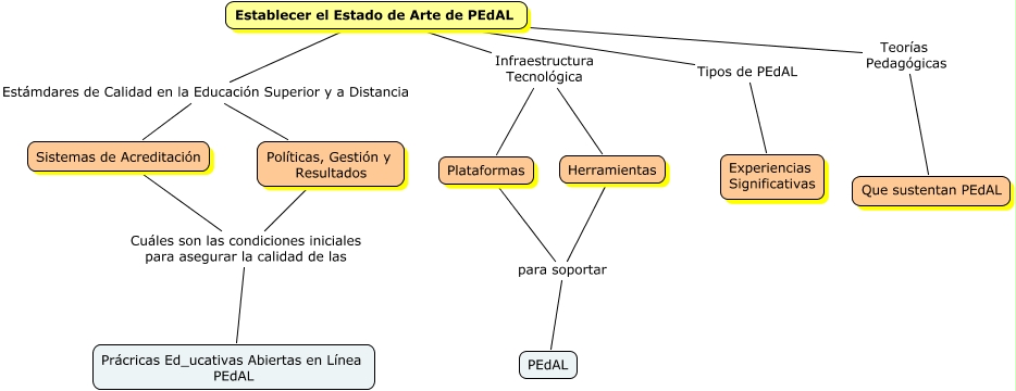 Este Cmap, tiene información relacionada con: Prueba 1, Establecer el Estado de Arte de PEdAL Estámdares de Calidad en la Educación Superior y a Distancia Sistemas de Acreditación, Establecer el Estado de Arte de PEdAL Infraestructura Tecnológica Plataformas, Establecer el Estado de Arte de PEdAL Tipos de PEdAL Experiencias Significativas, Políticas, Gestión y Resultados Cuáles son las condiciones iniciales para asegurar la calidad de las Prácricas Ed_ucativas Abiertas en Línea PEdAL, Herramientas para soportar PEdAL, Sistemas de Acreditación Cuáles son las condiciones iniciales para asegurar la calidad de las Prácricas Ed_ucativas Abiertas en Línea PEdAL, Plataformas para soportar PEdAL, Establecer el Estado de Arte de PEdAL Estámdares de Calidad en la Educación Superior y a Distancia Políticas, Gestión y Resultados, Establecer el Estado de Arte de PEdAL Teorías Pedagógicas Que sustentan PEdAL, Establecer el Estado de Arte de PEdAL Infraestructura Tecnológica Herramientas