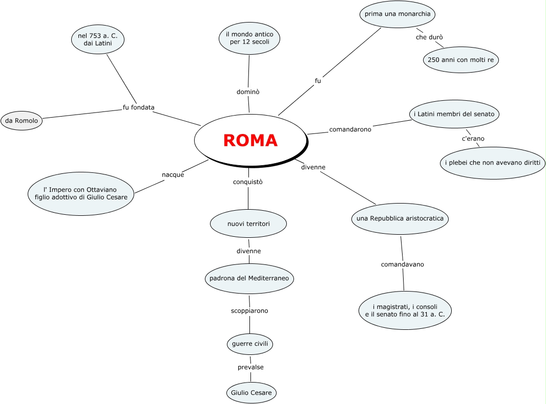 Questa Cmap, creata con IHMC CmapTools, contiene informazioni relative a: Roma, padrona del Mediterraneo scoppiarono guerre civili, ROMA nacque l' Impero con Ottaviano figlio adottivo di Giulio Cesare, ROMA fu fondata da Romolo, guerre civili prevalse Giulio Cesare, i Latini membri del senato c'erano i plebei che non avevano diritti, ROMA comandarono i Latini membri del senato, ROMA conquistò nuovi territori, prima una monarchia che durò 250 anni con molti re, ROMA fu fondata nel 753 a. C. dai Latini, ROMA dominò il mondo antico per 12 secoli, una Repubblica aristocratica comandavano i magistrati, i consoli e il senato fino al 31 a. C., nuovi territori divenne padrona del Mediterraneo, ROMA fu prima una monarchia, ROMA divenne una Repubblica aristocratica