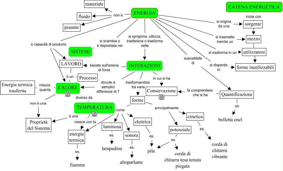 Questa Cmap, creata con IHMC CmapTools, contiene informazioni relative a: Energia1, TEMPERATURA è una Proprietà del Sistema, luminosa es. lampadina, Quantificazione es bolletta enel, utilizzatore ???? forme inutilizzabili, potenziale es pila, CATENA ENERGETICA inizia con sorgente, INTERAZIONI basate sull'azione di forze LAVORO, ENERGIA si disperde in forme inutilizzabili, forme come luminosa, ENERGIA suscettibile di Quantificazione, elettrica es. pila, forme come energia termica, ENERGIA si sprigiona, utilizza, trasferisce o trasforma nelle INTERAZIONI, CALORE misura quanta Energia termica trasferita, ENERGIA si trasmette tramite un mezzo, ENERGIA si trasforma in un utilizzatore, energia termica es. fiamma, forme principalmente potenziale, ENERGIA non è materiale, LAVORO è un Processo