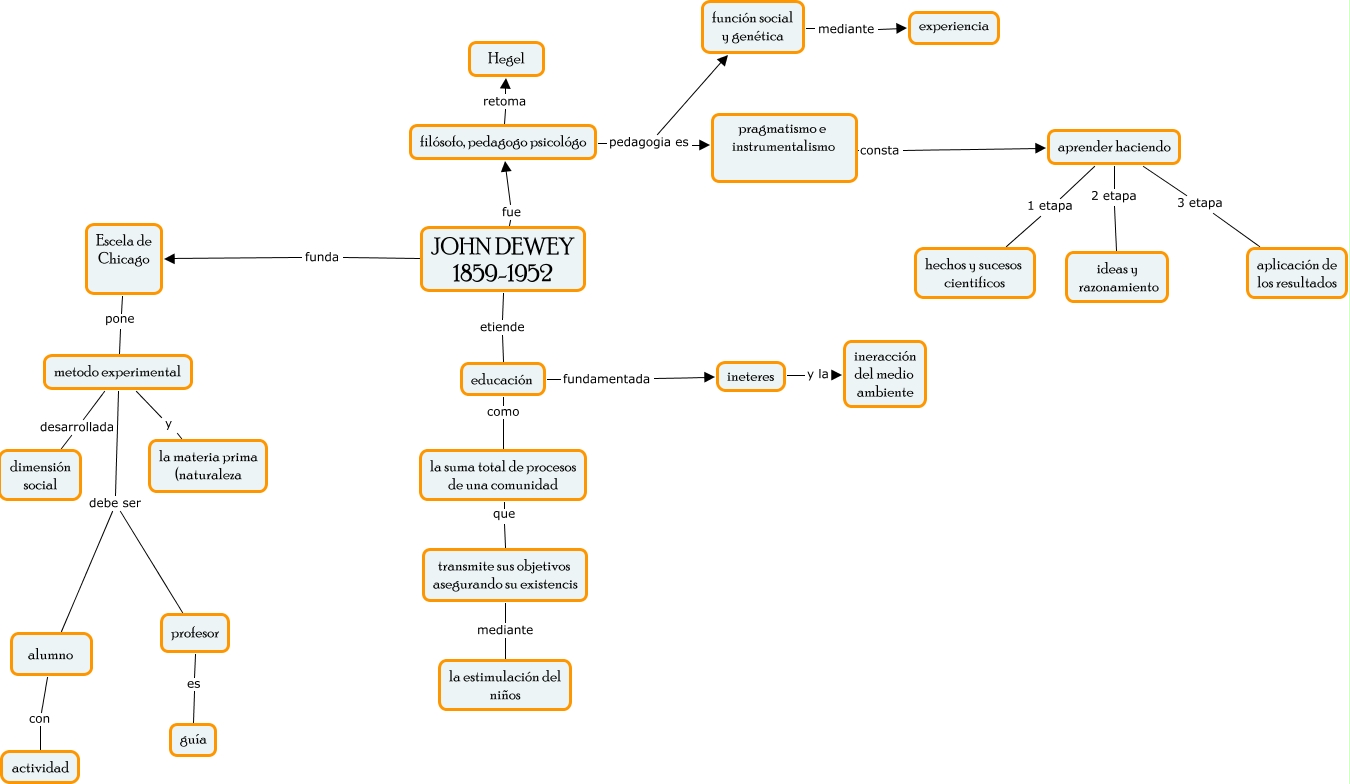 Este Cmap, tiene información relacionada con: John dewey, la suma total de procesos de una comunidad que transmite sus objetivos asegurando su existencis, aprender haciendo 2 etapa ideas y razonamiento, metodo experimental debe ser alumno, metodo experimental desarrollada dimensión social, profesor es guía, metodo experimental debe ser profesor, JOHN DEWEY 1859-1952 fue filósofo, pedagogo psicológo, filósofo, pedagogo psicológo retoma Hegel, aprender haciendo 3 etapa aplicación de los resultados, JOHN DEWEY 1859-1952 funda Escela de Chicago, aprender haciendo 1 etapa hechos y sucesos cientificos, Escela de Chicago pone metodo experimental, pragmatismo e instrumentalismo consta aprender haciendo, filósofo, pedagogo psicológo pedagogia es pragmatismo e instrumentalismo, metodo experimental y la materia prima (naturaleza, alumno con actividad, JOHN DEWEY 1859-1952 etiende educación, transmite sus objetivos asegurando su existencis mediante la estimulación del niños, filósofo, pedagogo psicológo pedagogia es función social y genética, ineteres y la ineracción del medio ambiente
