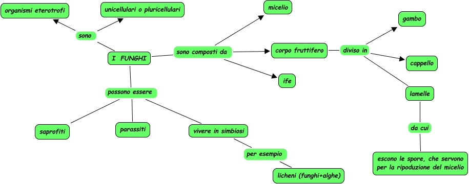 Questa Cmap, creata con IHMC CmapTools, contiene informazioni relative a: funghi, I FUNGHI sono composti da corpo fruttifero, I FUNGHI possono essere parassiti, I FUNGHI sono organismi eterotrofi, I FUNGHI sono composti da ife, lamelle da cui escono le spore, che servono per la ripoduzione del micelio, I FUNGHI sono unicellulari o pluricellulari, I FUNGHI possono essere saprofiti, corpo fruttifero diviso in lamelle, I FUNGHI possono essere vivere in simbiosi, corpo fruttifero diviso in cappello, corpo fruttifero diviso in gambo, I FUNGHI sono composti da micelio, vivere in simbiosi per esempio licheni (funghi+alghe)