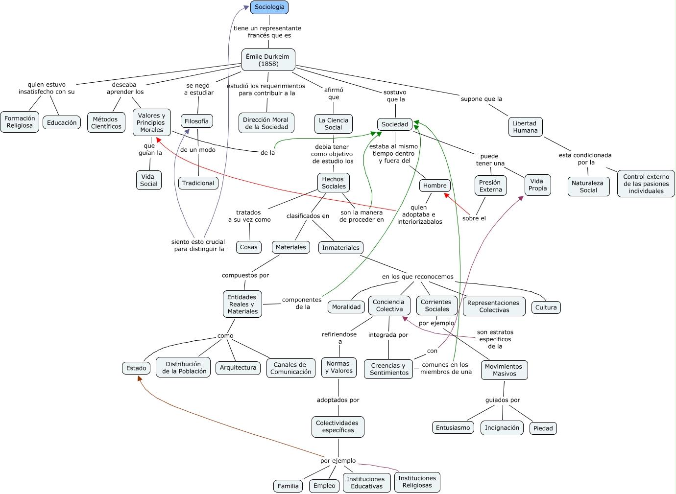 Este Cmap, tiene información relacionada con: 6 F La Sociología por Émile Durkheim, Movimientos Masivos guiados por Entusiasmo, Émile Durkeim (1858) afirmó que La Ciencia Social, Creencias y Sentimientos comunes en los miembros de una Sociedad, Sociologia tiene un representante francés que es Émile Durkeim (1858), Inmateriales en los que reconocemos Moralidad, Movimientos Masivos guiados por Piedad, Émile Durkeim (1858) estudió los requerimientos para contribuir a la Dirección Moral de la Sociedad, Filosofía de un modo Tradicional, Sociedad estaba al mismo tiempo dentro y fuera del Hombre, Representaciones Colectivas son estratos especificos de la Conciencia Colectiva, Entidades Reales y Materiales como Estado, Colectividades específicas por ejemplo Familia, Presión Externa sobre el Hombre, Conciencia Colectiva integrada por Creencias y Sentimientos, Inmateriales en los que reconocemos Cultura, La Ciencia Social debia tener como objetivo de estudio los Hechos Sociales, Sociedad puede tener una Presión Externa, Hombre quien adoptaba e interiorizabalos Valores y Principios Morales, Hechos Sociales tratados a su vez como Cosas, Colectividades específicas por ejemplo Instituciones Religiosas