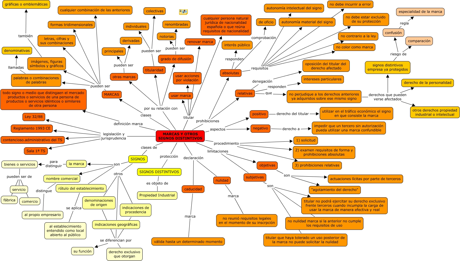 Este Cmap, tiene información relacionada con: Marcas y otros signos distintivos, MARCAS Y OTROS SIGNOS DISTINTIVOS limitaciones subjetivas, MARCAS Y OTROS SIGNOS DISTINTIVOS declaración caducidad, MARCAS Y OTROS SIGNOS DISTINTIVOS legislación y jurisprudencia Ley 32/88, SIGNOS DISTINTIVOS es objeto de Propiedad Industrial, MARCAS pueden ser formas tridimensionales, indicaciones geográficas se diferencian por derecho exclusivo que otorgan, indicaciones de procedencia se diferencian por derecho exclusivo que otorgan, nulidad marca no reunió requisitos legales en el momento de su inscrpción, bienes o servicios pueden ser de servicio, no perjudique a los derechos anteriores ya adquiridos sobre ese mismo signo derechos que pueden verse afectados signos distintivos empresa ya protegidos, MARCAS Y OTROS SIGNOS DISTINTIVOS declaración nulidad, grado de difusión pueden ser notorias, absolutas requisitos autonomía intelectual del signo, otras marcas pueden ser principales, MARCAS pueden ser imágenes, figuras símbolos y gráficos, bienes o servicios pueden ser de comercio, MARCAS Y OTROS SIGNOS DISTINTIVOS por su relación con titularidad, MARCAS Y OTROS SIGNOS DISTINTIVOS titular usar marca, SIGNOS son rótulo del establecimiento, rótulo del establecimiento se aplica al establecimiento entendido como local abierto al público