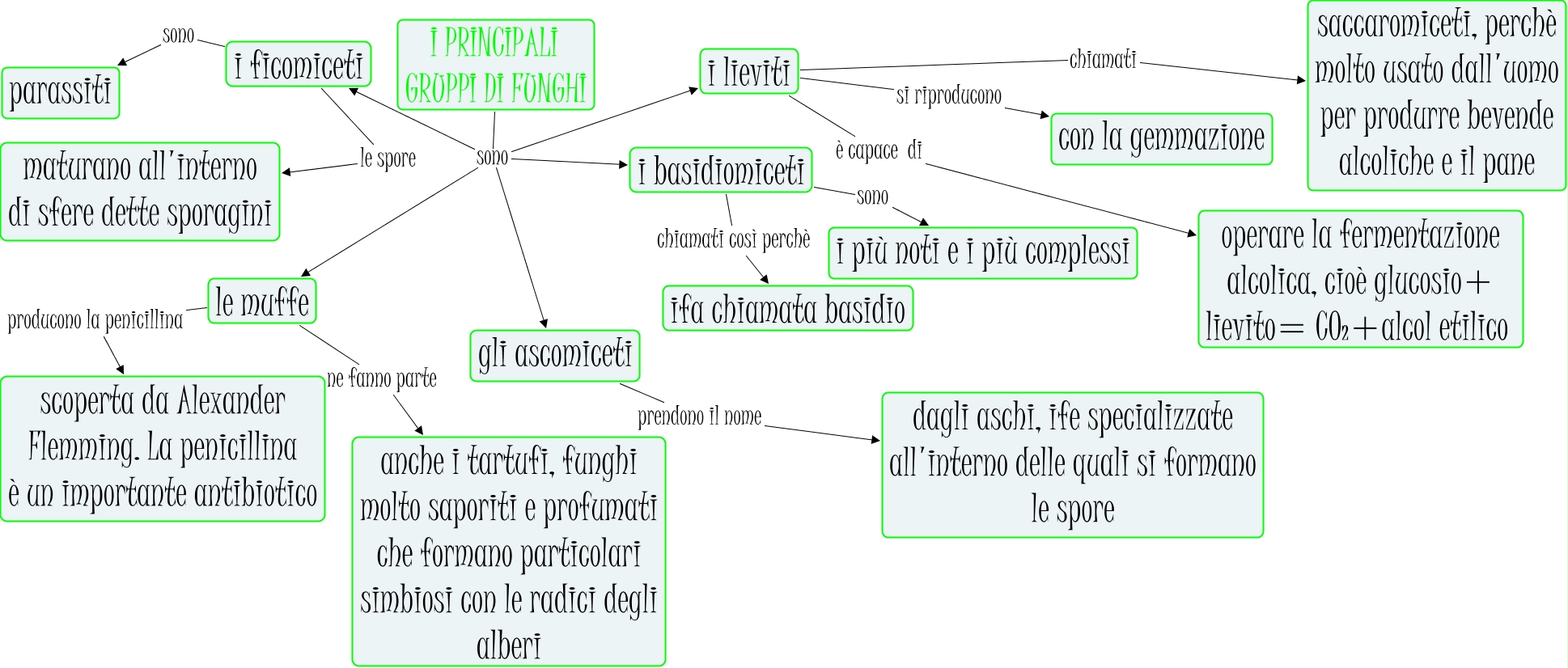Questa Cmap, creata con IHMC CmapTools, contiene informazioni relative a: I FUNGHI 2, gli ascomiceti prendono il nome dagli aschi, ife specializzate all'interno delle quali si formano le spore, I PRINCIPALI GRUPPI DI FUNGHI sono i lieviti, i basidiomiceti chiamati così perchè ifa chiamata basidio, i lieviti si riproducono con la gemmazione, I PRINCIPALI GRUPPI DI FUNGHI sono i ficomiceti, I PRINCIPALI GRUPPI DI FUNGHI sono gli ascomiceti, le muffe producono la penicillina scoperta da Alexander Flemming. La penicillina è un importante antibiotico, i ficomiceti sono parassiti, i basidiomiceti sono i più noti e i più complessi, I PRINCIPALI GRUPPI DI FUNGHI sono le muffe, i lieviti chiamati saccaromiceti, perchè molto usato dall'uomo per produrre bevende alcoliche e il pane, i ficomiceti le spore maturano all'interno di sfere dette sporagini, le muffe ne fanno parte anche i tartufi, funghi molto saporiti e profumati che formano particolari simbiosi con le radici degli alberi, I PRINCIPALI GRUPPI DI FUNGHI sono i basidiomiceti, i lieviti è capace di operare la fermentazione alcolica, cioè glucosio+ lievito= CO2+alcol etilico