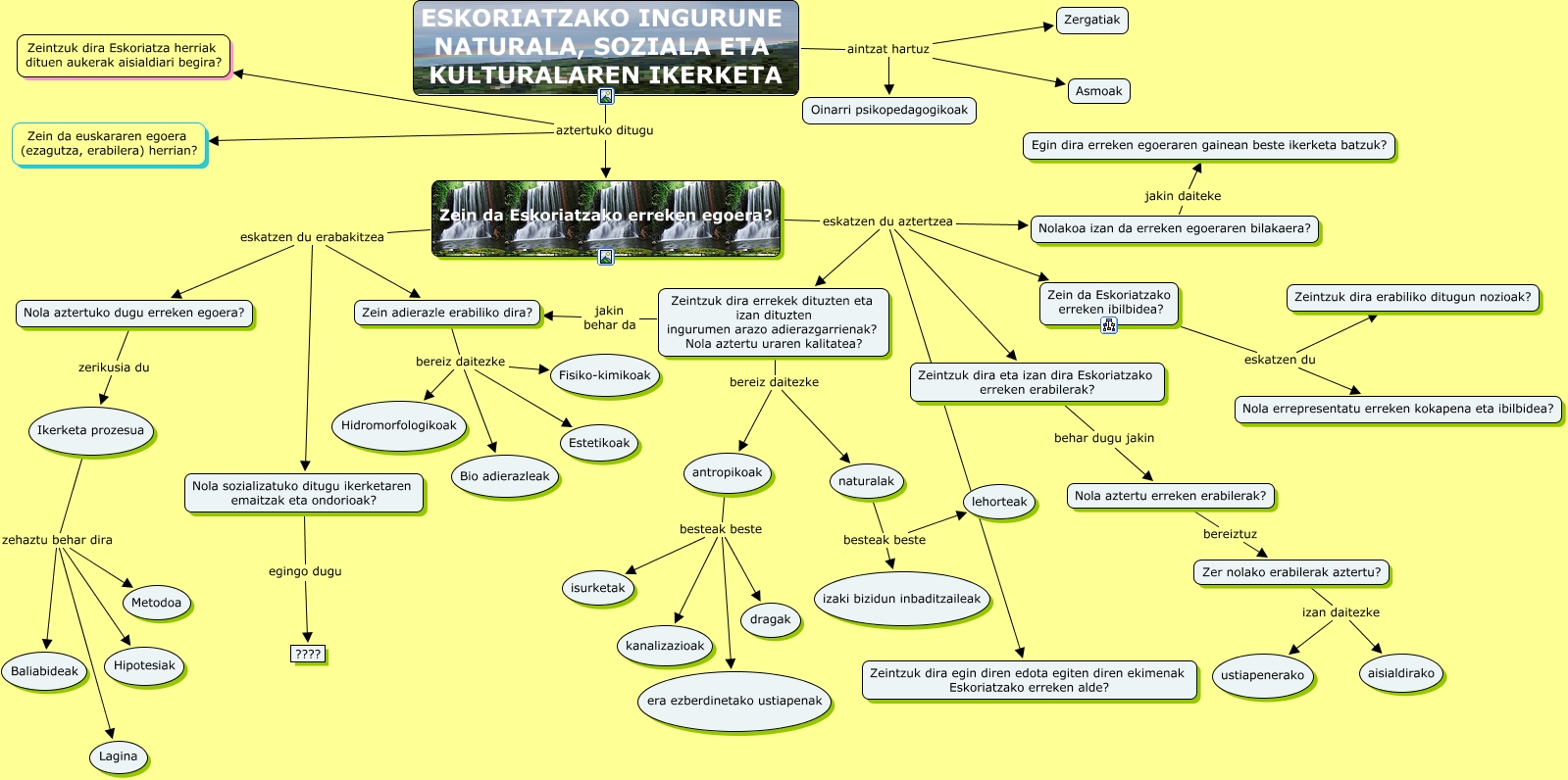 Este Cmap, tiene información relacionada con: Eskoriatzako ingurunearen ikerketa planifikazioa, Nolakoa izan da erreken egoeraren bilakaera? jakin daiteke Egin dira erreken egoeraren gainean beste ikerketa batzuk?, Zein da Eskoriatzako erreken ibilbidea? eskatzen du Zeintzuk dira erabiliko ditugun nozioak?, Zein da Eskoriatzako erreken egoera? eskatzen du aztertzea Zeintzuk dira errekek dituzten eta izan dituzten ingurumen arazo adierazgarrienak? Nola aztertu uraren kalitatea?, Zeintzuk dira errekek dituzten eta izan dituzten ingurumen arazo adierazgarrienak? Nola aztertu uraren kalitatea? jakin behar da Zein adierazle erabiliko dira?, Ikerketa prozesua zehaztu behar dira Baliabideak, antropikoak besteak beste kanalizazioak, Zein da Eskoriatzako erreken egoera? eskatzen du erabakitzea Zein adierazle erabiliko dira?, Nola aztertuko dugu erreken egoera? zerikusia du Ikerketa prozesua, Zeintzuk dira errekek dituzten eta izan dituzten ingurumen arazo adierazgarrienak? Nola aztertu uraren kalitatea? bereiz daitezke antropikoak, Zein adierazle erabiliko dira? bereiz daitezke Fisiko-kimikoak, ESKORIATZAKO INGURUNE NATURALA, SOZIALA ETA KULTURALAREN IKERKETA aintzat hartuz Asmoak, Ikerketa prozesua zehaztu behar dira Lagina, Ikerketa prozesua zehaztu behar dira Hipotesiak, ESKORIATZAKO INGURUNE NATURALA, SOZIALA ETA KULTURALAREN IKERKETA aztertuko ditugu Zeintzuk dira Eskoriatza herriak dituen aukerak aisialdiari begira?, naturalak besteak beste lehorteak, Nola sozializatuko ditugu ikerketaren emaitzak eta ondorioak? egingo dugu ????, Zein da Eskoriatzako erreken egoera? eskatzen du aztertzea Zein da Eskoriatzako erreken ibilbidea?, Zeintzuk dira eta izan dira Eskoriatzako erreken erabilerak? behar dugu jakin Nola aztertu erreken erabilerak?, Zer nolako erabilerak aztertu? izan daitezke ustiapenerako, Ikerketa prozesua zehaztu behar dira Metodoa