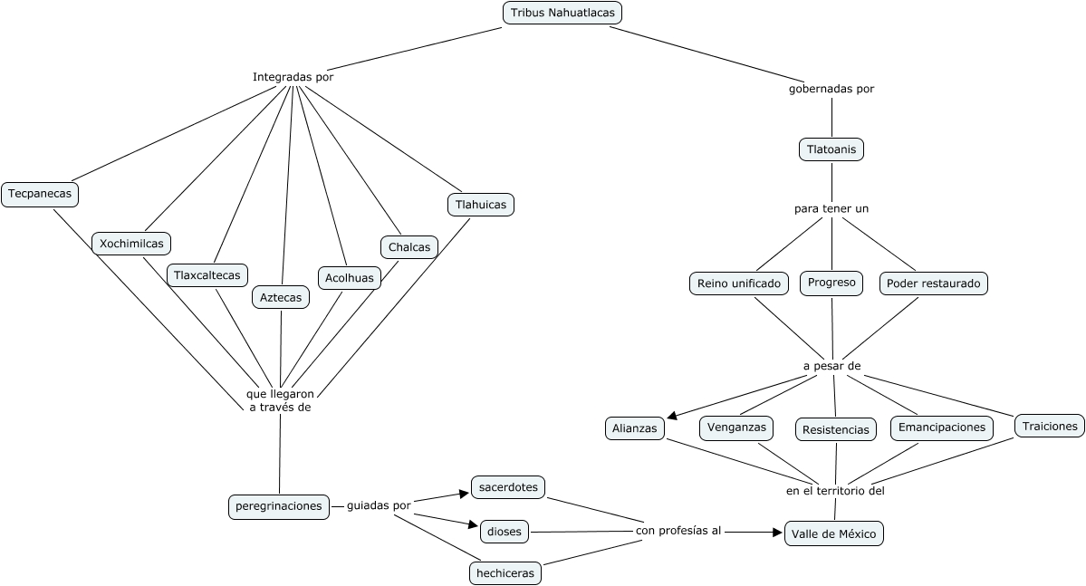 Este Cmap, tiene información relacionada con: 05 Tribus Nahuatlacas, peregrinaciones guiadas por dioses, Poder restaurado a pesar de Emancipaciones, Reino unificado a pesar de Alianzas, Tlatoanis para tener un Reino unificado, Progreso a pesar de Alianzas, Tribus Nahuatlacas Integradas por Chalcas, Tribus Nahuatlacas Integradas por Tlahuicas, Tribus Nahuatlacas gobernadas por Tlatoanis, hechiceras con profesías al Valle de México, Tlaxcaltecas que llegaron a través de peregrinaciones, Tribus Nahuatlacas Integradas por Tecpanecas, sacerdotes con profesías al Valle de México, Resistencias en el territorio del Valle de México, Traiciones a pesar de Venganzas, Tribus Nahuatlacas Integradas por Aztecas, Progreso a pesar de Emancipaciones, Venganzas en el territorio del Valle de México, Aztecas que llegaron a través de peregrinaciones, Poder restaurado a pesar de Venganzas, Tecpanecas que llegaron a través de peregrinaciones