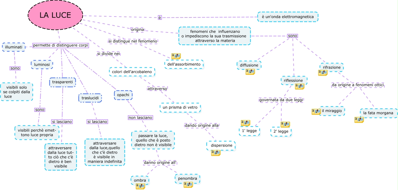 Questa Cmap, creata con IHMC CmapTools, contiene informazioni relative a: LA LUCE, illuminati sono visibili solo se colpiti dalla luce, trasparenti si lasciano attraversare dalla luce tut- to ciò che c'è dietro è ben visibile, LA LUCE permette di distinguere corpi illuminati, passare la luce, quello che è posto dietro non è visibile danno origine all' ombra, rifrazione da origine a fenomeni ottici il miraggio, fenomeni che influenzano o impediscono la sua trasmissione attraverso la materia sono riflessione, fenomeni che influenzano o impediscono la sua trasmissione attraverso la materia sono rifrazione, LA LUCE si divide nei colori dell'arcobaleno, un prisma di vetro dando origine alla dispersione, LA LUCE si distingue nel fenomeno dell'assorbimento, riflessione governata da due leggi 1' legge, rifrazione da origine a fenomeni ottici la fata morgana, LA LUCE permette di distinguere corpi opachi, LA LUCE permette di distinguere corpi trasparenti, LA LUCE è è un'onda elettromagnetica, colori dell'arcobaleno attraverso un prisma di vetro, riflessione governata da due leggi 2' legge, luminosi sono visibili perchè emet- tono luce propria, LA LUCE permette di distinguere corpi luminosi, passare la luce, quello che è posto dietro non è visibile danno origine all' penombra