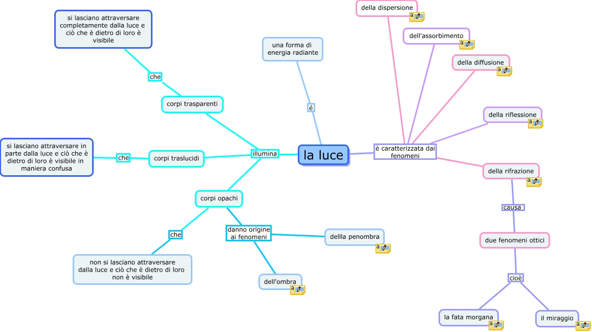 Questa Cmap, creata con IHMC CmapTools, contiene informazioni relative a: la luce, la luce è caratterizzata dai fenomeni della diffusione, la luce illumina corpi trasparenti, corpi opachi danno origine ai fenomeni dellla penombra, corpi opachi che non si lasciano attraversare dalla luce e ciò che è dietro di loro non è visibile, la luce è caratterizzata dai fenomeni della riflessione, la luce illumina corpi traslucidi, corpi trasparenti che si lasciano attraversare completamente dalla luce e ciò che è dietro di loro è visibile, la luce è caratterizzata dai fenomeni della dispersione, della rifrazione causa due fenomeni ottici, corpi traslucidi che si lasciano attraversare in parte dalla luce e ciò che è dietro di loro è visibile in maniera confusa, la luce è caratterizzata dai fenomeni della rifrazione, la luce è caratterizzata dai fenomeni dell'assorbimento, due fenomeni ottici cioè il miraggio, la luce illumina corpi opachi, due fenomeni ottici cioè la fata morgana, la luce é una forma di energia radiante, corpi opachi danno origine ai fenomeni dell'ombra