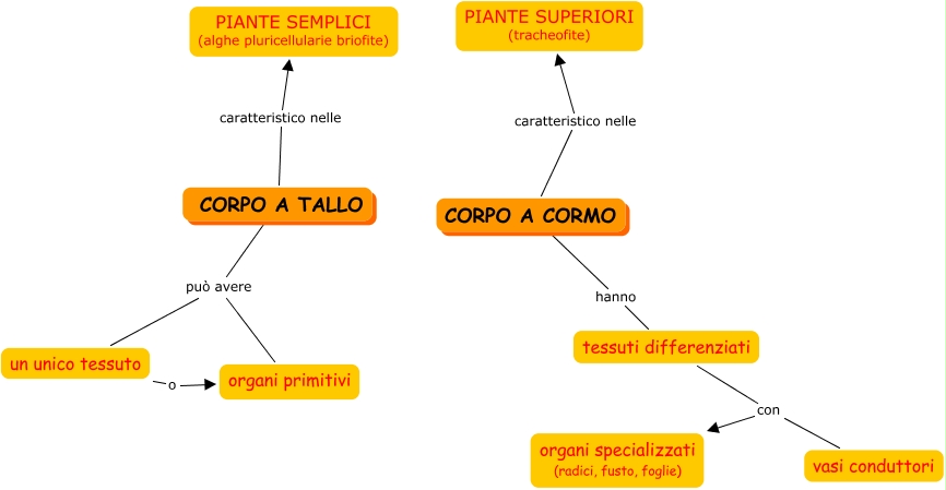 Questa Cmap, creata con IHMC CmapTools, contiene informazioni relative a: C. TALLO-Cormo, CORPO A TALLO può avere organi primitivi, tessuti differenziati con vasi conduttori, CORPO A TALLO può avere un unico tessuto, tessuti differenziati con organi specializzati (radici, fusto, foglie), CORPO A CORMO hanno tessuti differenziati, CORPO A CORMO caratteristico nelle PIANTE SUPERIORI (tracheofite), CORPO A TALLO caratteristico nelle PIANTE SEMPLICI (alghe pluricellularie briofite), un unico tessuto o organi primitivi