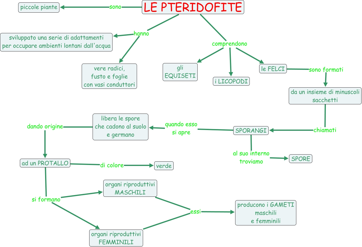 Questa Cmap, creata con IHMC CmapTools, contiene informazioni relative a: le pteridofite, da un insieme di minuscoli sacchetti chiamati SPORANGI, SPORANGI al suo interno troviamo SPORE, SPORANGI quando esso si apre libera le spore che cadono al suolo e germano, organi riproduttivi MASCHILI essi producono i GAMETI maschili e femminili, LE PTERIDOFITE comprendono le FELCI, LE PTERIDOFITE hanno vere radici, fusto e foglie con vasi conduttori, LE PTERIDOFITE comprendono gli EQUISETI, LE PTERIDOFITE comprendono i LICOPODI, organi riproduttivi FEMMINILI essi producono i GAMETI maschili e femminili, le FELCI sono formati da un insieme di minuscoli sacchetti, LE PTERIDOFITE sono piccole piante, LE PTERIDOFITE hanno sviluppato una serie di adattamenti per occupare ambienti lontani dall'acqua, ad un PROTALLO si formano organi riproduttivi FEMMINILI, ad un PROTALLO di colore verde, libera le spore che cadono al suolo e germano dando origine ad un PROTALLO, ad un PROTALLO si formano organi riproduttivi MASCHILI