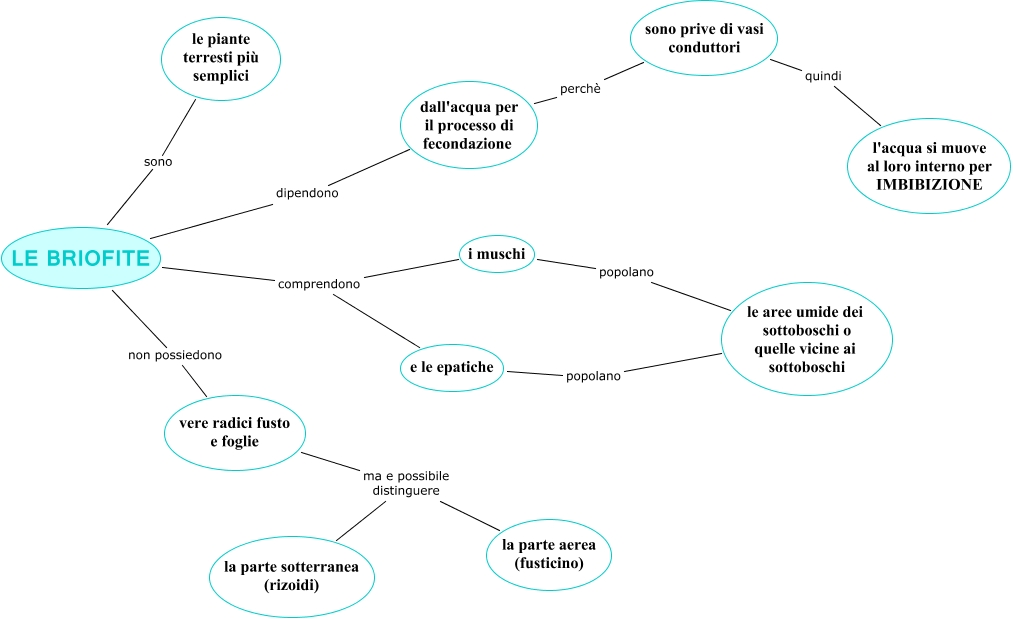 Questa Cmap, creata con IHMC CmapTools, contiene informazioni relative a: le briofote, LE BRIOFITE comprendono e le epatiche, vere radici fusto e foglie ma e possibile distinguere la parte aerea (fusticino), LE BRIOFITE dipendono dall'acqua per il processo di fecondazione, LE BRIOFITE sono le piante terresti più semplici, vere radici fusto e foglie ma e possibile distinguere la parte sotterranea (rizoidi), LE BRIOFITE non possiedono vere radici fusto e foglie, dall'acqua per il processo di fecondazione perchè sono prive di vasi conduttori, e le epatiche popolano le aree umide dei sottoboschi o quelle vicine ai sottoboschi, i muschi popolano le aree umide dei sottoboschi o quelle vicine ai sottoboschi, LE BRIOFITE comprendono i muschi, sono prive di vasi conduttori quindi l'acqua si muove al loro interno per IMBIBIZIONE