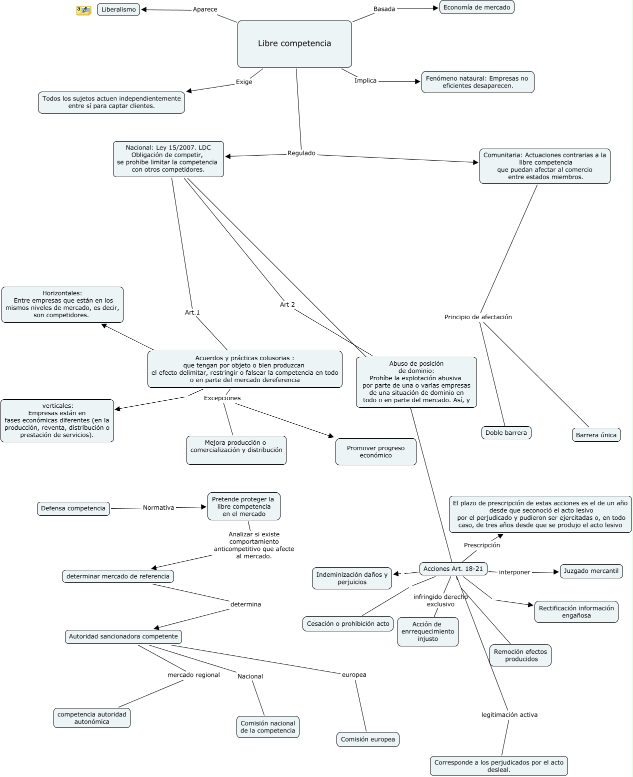 Este Cmap, tiene información relacionada con: airlines revisado, Autoridad sancionadora competente europea Comisión europea, Acuerdos y prácticas colusorias : que tengan por objeto o bien produzcan el efecto delimitar, restringir o falsear la competencia en todo o en parte del mercado dereferencia Excepciones Promover progreso económico, Libre competencia Regulado Comunitaria: Actuaciones contrarias a la libre competencia que puedan afectar al comercio entre estados miembros., Acciones Art. 18-21 Prescripción El plazo de prescripción de estas acciones es el de un año desde que seconoció el acto lesivo por el perjudicado y pudieron ser ejercitadas o, en todo caso, de tres años desde que se produjo el acto lesivo, Pretende proteger la libre competencia en el mercado Analizar si existe comportamiento anticompetitivo que afecte al mercado. determinar mercado de referencia, Acuerdos y prácticas colusorias : que tengan por objeto o bien produzcan el efecto delimitar, restringir o falsear la competencia en todo o en parte del mercado dereferencia Excepciones Mejora producción o comercialización y distribución, Comunitaria: Actuaciones contrarias a la libre competencia que puedan afectar al comercio entre estados miembros. Principio de afectación Barrera única, Acuerdos y prácticas colusorias : que tengan por objeto o bien produzcan el efecto delimitar, restringir o falsear la competencia en todo o en parte del mercado dereferencia verticales: Empresas están en fases económicas diferentes (en la producción, reventa, distribución o prestación de servicios)., Acciones Art. 18-21 infringido derecho exclusivo Acción de enrrequecimiento injusto, Acciones Art. 18-21 Cesación o prohibición acto, Libre competencia Exige Todos los sujetos actuen independientemente entre sí para captar clientes., Comunitaria: Actuaciones contrarias a la libre competencia que puedan afectar al comercio entre estados miembros. Principio de afectación Doble barrera, Libre competencia Basada Economía de mercado, Autoridad sancionadora competente Nacional Comisión nacional de la competencia, Libre competencia Aparece Liberalismo, Libre competencia Implica Fenómeno nataural: Empresas no eficientes desaparecen., Acciones Art. 18-21 Remoción efectos producidos, Acciones Art. 18-21 interponer Juzgado mercantil, Nacional: Ley 15/2007. LDC Obligación de competir, se prohibe limitar la competencia con otros competidores. Art.1 Acuerdos y prácticas colusorias : que tengan por objeto o bien produzcan el efecto delimitar, restringir o falsear la competencia en todo o en parte del mercado dereferencia, Acciones Art. 18-21 Indeminización daños y perjuicios