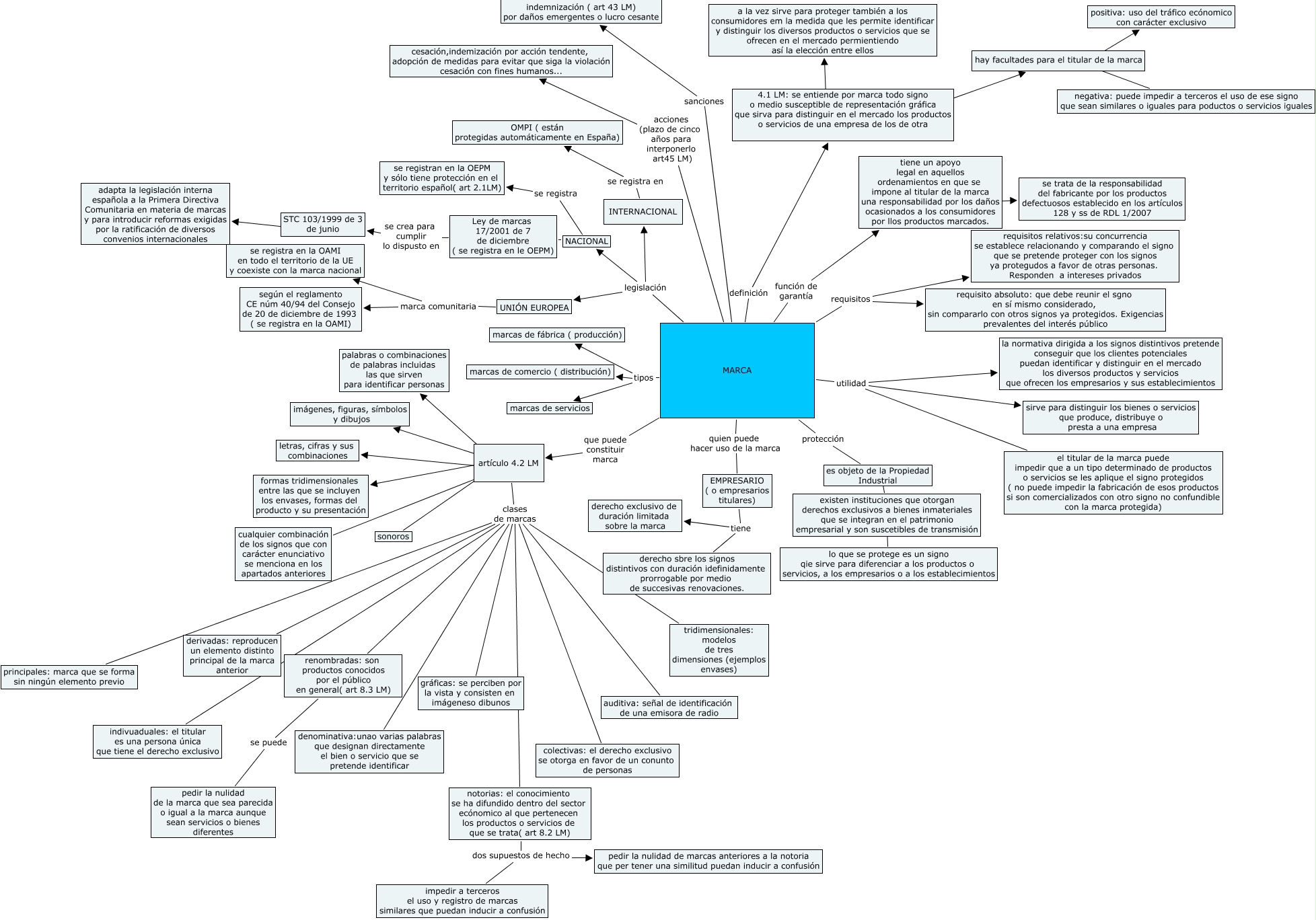 Este Cmap, tiene información relacionada con: escenari 8-9-10, artículo 4.2 LM clases de marcas derivadas: reproducen un elemento distinto principal de la marca anterior, hay facultades para el titular de la marca ???? negativa: puede impedir a terceros el uso de ese signo que sean similares o iguales para poductos o servicios iguales, notorias: el conocimiento se ha difundido dentro del sector ecónomico al que pertenecen los productos o servicios de que se trata( art 8.2 LM) dos supuestos de hecho pedir la nulidad de marcas anteriores a la notoria que per tener una similitud puedan inducir a confusión, INTERNACIONAL se registra en OMPI ( están protegidas automáticamente en España), tiene un apoyo legal en aquellos ordenamientos en que se impone al titular de la marca una responsabilidad por los daños ocasionados a los consumidores por llos productos marcados. ???? se trata de la responsabilidad del fabricante por los productos defectuosos establecido en los artículos 128 y ss de RDL 1/2007, MARCA legislación UNIÓN EUROPEA, artículo 4.2 LM clases de marcas gráficas: se perciben por la vista y consisten en imágeneso dibunos, MARCA sanciones indemnización ( art 43 LM) por daños emergentes o lucro cesante, renombradas: son productos conocidos por el público en general( art 8.3 LM) se puede pedir la nulidad de la marca que sea parecida o igual a la marca aunque sean servicios o bienes diferentes, MARCA acciones (plazo de cinco años para interponerlo art45 LM) cesación,indemización por acción tendente, adopción de medidas para evitar que siga la violación cesación con fines humanos..., MARCA requisitos requisito absoluto: que debe reunir el sgno en sí mismo considerado, sin compararlo con otros signos ya protegidos. Exigencias prevalentes del interés público, artículo 4.2 LM ???? cualquier combinación de los signos que con carácter enunciativo se menciona en los apartados anteriores, Ley de marcas 17/2001 de 7 de diciembre ( se registra en le OEPM) se crea para cumplir lo dispusto en STC 103/1999 de 3 de junio, MARCA utilidad la normativa dirigida a los signos distintivos pretende conseguir que los clientes potenciales puedan identificar y distinguir en el mercado los diversos productos y servicios que ofrecen los empresarios y sus establecimientos, MARCA tipos marcas de servicios, UNIÓN EUROPEA marca comunitaria según el reglamento CE núm 40/94 del Consejo de 20 de diciembre de 1993 ( se registra en la OAMI), MARCA que puede constituir marca artículo 4.2 LM, artículo 4.2 LM ???? palabras o combinaciones de palabras incluidas las que sirven para identificar personas, MARCA definición 4.1 LM: se entiende por marca todo signo o medio susceptible de representación gráfica que sirva para distinguir en el mercado los productos o servicios de una empresa de los de otra, UNIÓN EUROPEA marca comunitaria se registra en la OAMI en todo el territorio de la UE y coexiste con la marca nacional