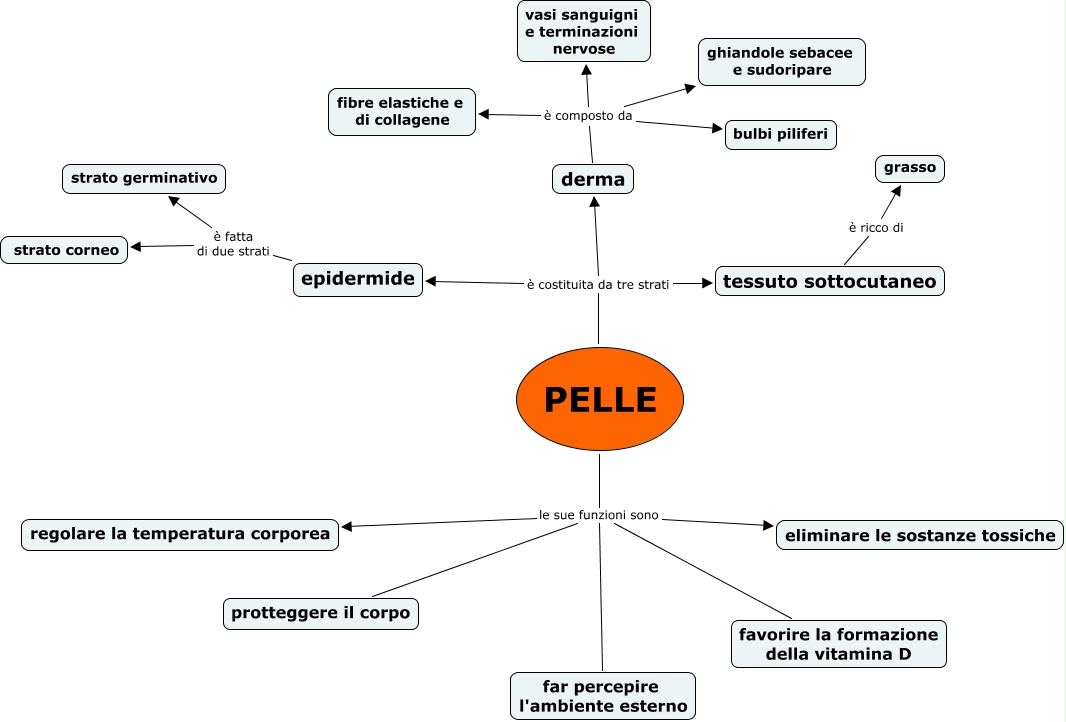 Questa Cmap, creata con IHMC CmapTools, contiene informazioni relative a: Pelle, PELLE è costituita da tre strati derma, PELLE le sue funzioni sono regolare la temperatura corporea, tessuto sottocutaneo è ricco di grasso, PELLE le sue funzioni sono far percepire l'ambiente esterno, derma è composto da ghiandole sebacee e sudoripare, PELLE le sue funzioni sono protteggere il corpo, derma è composto da bulbi piliferi, PELLE le sue funzioni sono favorire la formazione della vitamina D, PELLE è costituita da tre strati epidermide, derma è composto da vasi sanguigni e terminazioni nervose, derma è composto da fibre elastiche e di collagene, PELLE è costituita da tre strati tessuto sottocutaneo, epidermide è fatta di due strati strato corneo, epidermide è fatta di due strati strato germinativo, PELLE le sue funzioni sono eliminare le sostanze tossiche