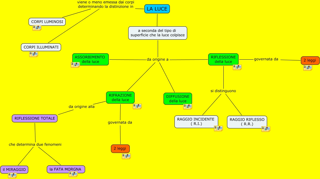 Questa Cmap, creata con IHMC CmapTools, contiene informazioni relative a: La Luce, a seconda del tipo di superficie che la luce colpisce da origine a RIFRAZIONE della luce, LA LUCE a seconda del tipo di superficie che la luce colpisce, RIFLESSIONE della luce governata da 2 leggi, RIFLESSIONE TOTALE che determina due fenomeni la FATA MORGNA, LA LUCE viene o meno emessa dai corpi determinando la distinzione in CORPI ILLUMINATI, RIFRAZIONE della luce da origine alla RIFLESSIONE TOTALE, RIFLESSIONE della luce si distinguono RAGGIO INCIDENTE ( R.I.), RIFLESSIONE della luce si distinguono RAGGIO RIFLESSO ( R.R.), a seconda del tipo di superficie che la luce colpisce da origine a RIFLESSIONE della luce, RIFRAZIONE della luce governata da 2 leggi, RIFLESSIONE TOTALE che determina due fenomeni il MIRAGGIO, LA LUCE viene o meno emessa dai corpi determinando la distinzione in CORPI LUMINOSI, a seconda del tipo di superficie che la luce colpisce da origine a ASSORBIMENTO della luce, a seconda del tipo di superficie che la luce colpisce da origine a DIFFUSIONE della luce