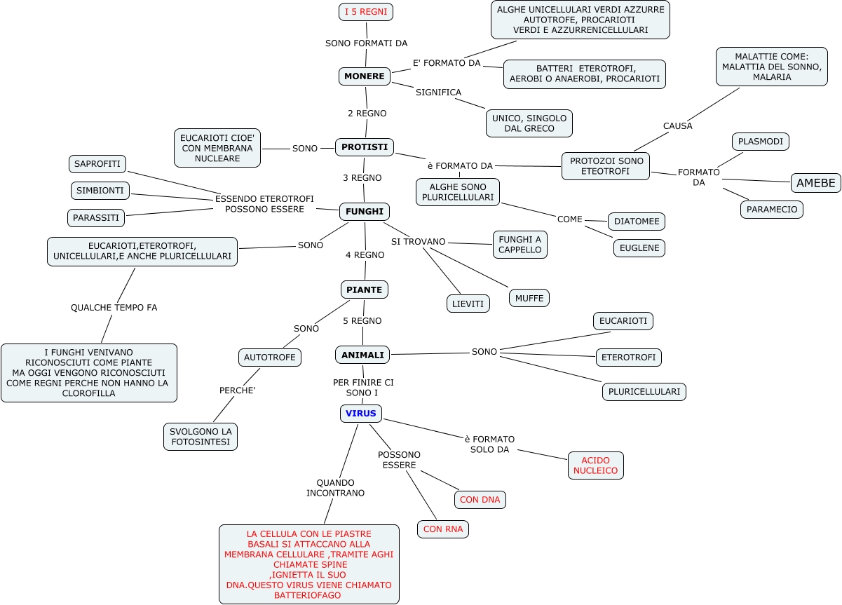 Questa Cmap, creata con IHMC CmapTools, contiene informazioni relative a: I 5 REGNI, FUNGHI SI TROVANO FUNGHI A CAPPELLO, PROTISTI è FORMATO DA PROTOZOI SONO ETEOTROFI, MONERE 2 REGNO PROTISTI, ALGHE SONO PLURICELLULARI COME EUGLENE, FUNGHI ESSENDO ETEROTROFI POSSONO ESSERE SAPROFITI, FUNGHI ESSENDO ETEROTROFI POSSONO ESSERE SIMBIONTI, FUNGHI ESSENDO ETEROTROFI POSSONO ESSERE PARASSITI, PROTOZOI SONO ETEOTROFI FORMATO DA AMEBE, PROTOZOI SONO ETEOTROFI FORMATO DA PARAMECIO, AUTOTROFE PERCHE' SVOLGONO LA FOTOSINTESI, PROTOZOI SONO ETEOTROFI FORMATO DA PLASMODI, MONERE E' FORMATO DA BATTERI ETEROTROFI, AEROBI O ANAEROBI, PROCARIOTI, ALGHE SONO PLURICELLULARI COME DIATOMEE, ANIMALI PER FINIRE CI SONO I VIRUS, VIRUS QUANDO INCONTRANO LA CELLULA CON LE PIASTRE BASALI SI ATTACCANO ALLA MEMBRANA CELLULARE ,TRAMITE AGHI CHIAMATE SPINE ,IGNIETTA IL SUO DNA.QUESTO VIRUS VIENE CHIAMATO BATTERIOFAGO, FUNGHI SI TROVANO LIEVITI, PIANTE SONO AUTOTROFE, PROTISTI 3 REGNO FUNGHI, MONERE SIGNIFICA UNICO, SINGOLO DAL GRECO, EUCARIOTI,ETEROTROFI, UNICELLULARI,E ANCHE PLURICELLULARI QUALCHE TEMPO FA I FUNGHI VENIVANO RICONOSCIUTI COME PIANTE MA OGGI VENGONO RICONOSCIUTI COME REGNI PERCHE NON HANNO LA CLOROFILLA
