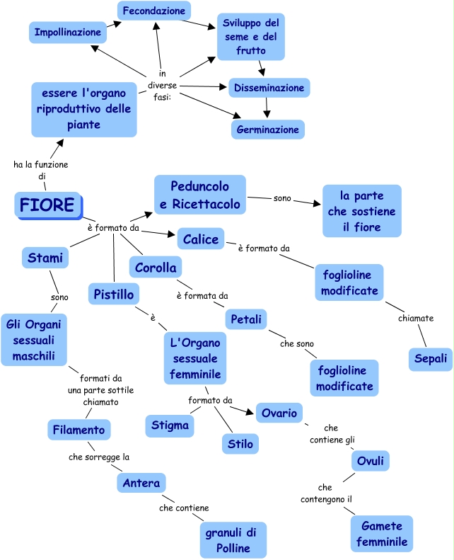 Questa Cmap, creata con IHMC CmapTools, contiene informazioni relative a: Fiore, Antera che contiene granuli di Polline, Disseminazione ???? Germinazione, Peduncolo e Ricettacolo sono la parte che sostiene il fiore, Impollinazione ???? Fecondazione, Ovuli che contengono il Gamete femminile, Stami sono Gli Organi sessuali maschili, FIORE è formato da Peduncolo e Ricettacolo, foglioline modificate chiamate Sepali, Calice è formato da foglioline modificate, essere l'organo riproduttivo delle piante in diverse fasi: Fecondazione, essere l'organo riproduttivo delle piante in diverse fasi: Germinazione, Pistillo è L'Organo sessuale femminile, essere l'organo riproduttivo delle piante in diverse fasi: Sviluppo del seme e del frutto, Fecondazione ???? Sviluppo del seme e del frutto, FIORE ha la funzione di essere l'organo riproduttivo delle piante, FIORE è formato da Stami, Ovario che contiene gli Ovuli, essere l'organo riproduttivo delle piante in diverse fasi: Disseminazione, FIORE è formato da Pistillo, Gli Organi sessuali maschili formati da una parte sottile chiamato Filamento