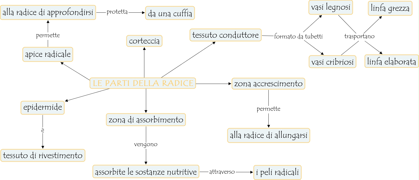 Questa Cmap, creata con IHMC CmapTools, contiene informazioni relative a: LE PARTI DELLA RADICE, alla radice di approfondirsi protetta da una cuffia, LE PARTI DELLA RADICE ???? zona accrescimento, zona accrescimento permette alla radice di allungarsi, tessuto conduttore formato da tubetti vasi cribriosi, vasi legnosi trasportano linfa grezza, tessuto conduttore formato da tubetti vasi legnosi, LE PARTI DELLA RADICE ???? epidermide, epidermide è tessuto di rivestimento, apice radicale permette alla radice di approfondirsi, zona di assorbimento vengono assorbite le sostanze nutritive, vasi cribriosi trasportano linfa elaborata, assorbite le sostanze nutritive attraverso i peli radicali, LE PARTI DELLA RADICE ???? apice radicale, LE PARTI DELLA RADICE ???? zona di assorbimento, LE PARTI DELLA RADICE ???? tessuto conduttore, vasi legnosi trasportano linfa elaborata, vasi cribriosi trasportano linfa grezza, LE PARTI DELLA RADICE ???? corteccia