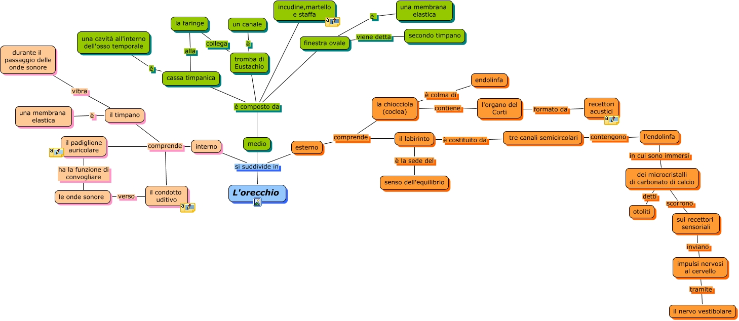 Questa Cmap, creata con IHMC CmapTools, contiene informazioni relative a: l'orecchio, tromba di Eustachio collega la faringe, interno comprende il timpano, sui recettori sensoriali inviano impulsi nervosi al cervello, L'orecchio si suddivide in interno, L'orecchio si suddivide in medio, la chiocciola (coclea) è colma di endolinfa, l'organo del Corti formato da recettori acustici, le onde sonore verso il condotto uditivo, la faringe alla cassa timpanica, finestra ovale viene detta secondo timpano, esterno comprende la chiocciola (coclea), impulsi nervosi al cervello tramite il nervo vestibolare, l'endolinfa in cui sono immersi dei microcristalli di carbonato di calcio, il labirinto è costituito da tre canali semicircolari, L'orecchio si suddivide in esterno, dei microcristalli di carbonato di calcio scorrono sui recettori sensoriali, la chiocciola (coclea) contiene l'organo del Corti, medio è composto da incudine,martello e staffa, tre canali semicircolari contengono l'endolinfa, dei microcristalli di carbonato di calcio detti otoliti