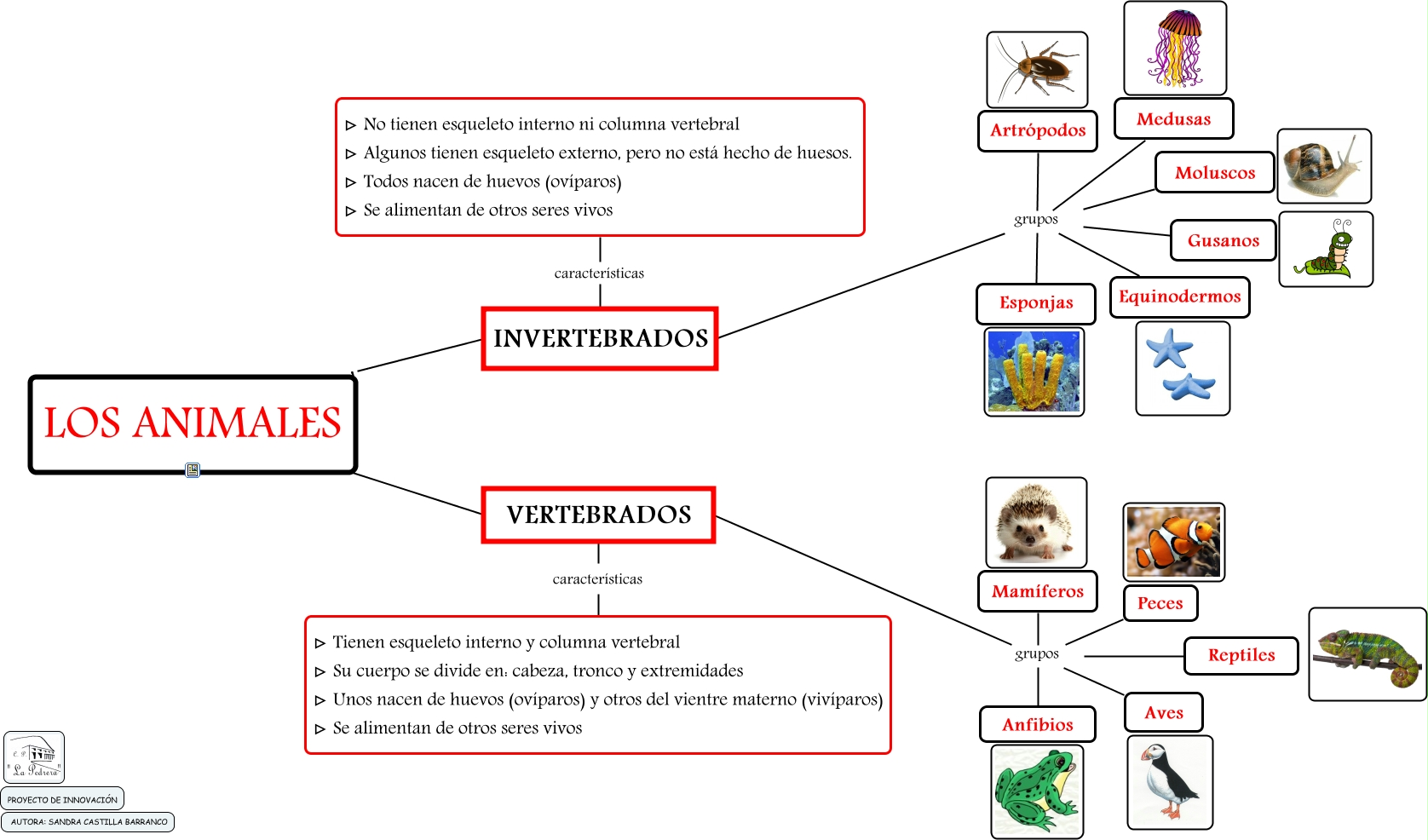 Este Cmap, tiene información relacionada con: VERTEBRADOS E INVERTEBRADOS 3º, INVERTEBRADOS grupos Artrópodos, VERTEBRADOS grupos Mamíferos, VERTEBRADOS grupos Aves, LOS ANIMALES . VERTEBRADOS, LOS ANIMALES . INVERTEBRADOS, INVERTEBRADOS características ⊳ No tienen esqueleto interno ni columna vertebral ⊳ Algunos tienen esqueleto externo, pero no está hecho de huesos. ⊳ Todos nacen de huevos (ovíparos) ⊳ Se alimentan de otros seres vivos, INVERTEBRADOS grupos Moluscos, VERTEBRADOS características ⊳ Tienen esqueleto interno y columna vertebral ⊳ Su cuerpo se divide en: cabeza, tronco y extremidades ⊳ Unos nacen de huevos (ovíparos) y otros del vientre materno (vivíparos) ⊳ Se alimentan de otros seres vivos, INVERTEBRADOS grupos Equinodermos, VERTEBRADOS grupos Anfibios, VERTEBRADOS grupos Peces, INVERTEBRADOS grupos Esponjas, INVERTEBRADOS grupos Gusanos, INVERTEBRADOS grupos Medusas, VERTEBRADOS grupos Reptiles