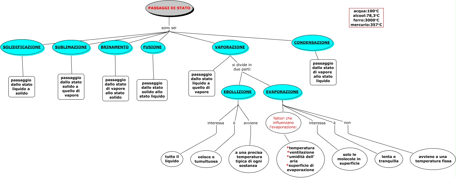 Questa Cmap, creata con IHMC CmapTools, contiene informazioni relative a: I PASSAGGI DI STATO (da finire), CONDENSAZIONE ???? passaggio dallo stato di vapore allo stato liquido, PASSAGGI DI STATO sono sei SOLIDIFICAZIONE, PASSAGGI DI STATO sono sei FUSIONE, PASSAGGI DI STATO sono sei BRINAMENTO, VAPORAZIONE si divide in due parti: EVAPORAZIONE, VAPORAZIONE si divide in due parti: EBOLLIZIONE, PASSAGGI DI STATO sono sei CONDENSAZIONE, FUSIONE ???? passaggio dallo stato solido allo stato liquido, EVAPORAZIONE fattori che influenzano l'evaporazione: *temperatura *ventilazione *umidità dell' aria *superficie di evaporazione, EBOLLIZIONE è veloce e tumultuosa, VAPORAZIONE ???? passaggio dallo stato liquido a quello di vapore, EVAPORAZIONE non avviene a una temperatura fissa, EBOLLIZIONE interessa tutto il liquido, SUBLIMAZIONE ???? passaggio dallo stato solido a quello di vapore, EVAPORAZIONE è lenta e tranquilla, EVAPORAZIONE interessa solo le molecole in superficie, SOLIDIFICAZIONE ???? passaggio dallo stato liquido a solido, PASSAGGI DI STATO sono sei VAPORAZIONE, EBOLLIZIONE avviene a una precisa temperatura tipica di ogni sostanza, BRINAMENTO ???? passaggio dallo stato di vapore allo stato solido