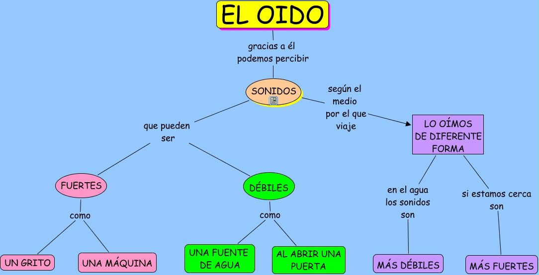 Este Cmap, tiene información relacionada con: EL SONIDO 2º, FUERTES como UN GRITO, LO OÍMOS DE DIFERENTE FORMA en el agua los sonidos son MÁS DÉBILES, DÉBILES como AL ABRIR UNA PUERTA, FUERTES como UNA MÁQUINA, EL OIDO gracias a él podemos percibir SONIDOS, SONIDOS según el medio por el que viaje LO OÍMOS DE DIFERENTE FORMA, SONIDOS que pueden ser FUERTES, SONIDOS que pueden ser DÉBILES, LO OÍMOS DE DIFERENTE FORMA si estamos cerca son MÁS FUERTES, DÉBILES como UNA FUENTE DE AGUA