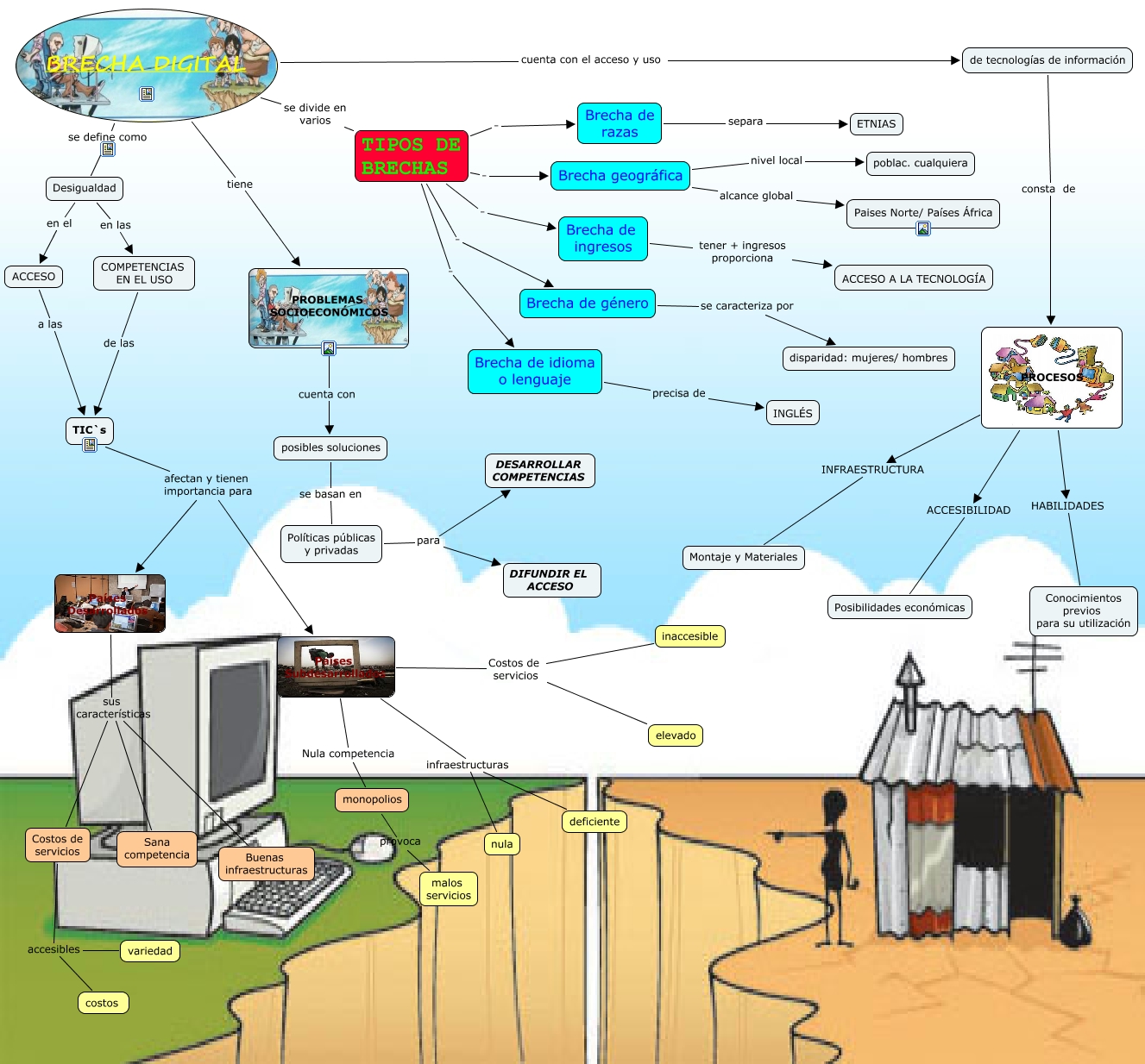 Este Cmap, tiene información relacionada con: BRECHA DIGITAL, BRECHA DIGITAL se define como Desigualdad, TIPOS DE BRECHAS . Brecha geográfica, posibles soluciones se basan en Políticas públicas y privadas, COMPETENCIAS EN EL USO de las TIC`s, Brecha de ingresos tener + ingresos proporciona ACCESO A LA TECNOLOGÍA, Desigualdad en el ACCESO, PROBLEMAS SOCIOECONÓMICOS cuenta con posibles soluciones, Brecha geográfica alcance global Paises Norte/ Países África, TIPOS DE BRECHAS . Brecha de ingresos, monopolios provoca malos servicios, de tecnologías de información consta de PROCESOS, TIC`s afectan y tienen importancia para Países Subdesarrollados, Países Subdesarrollados infraestructuras deficiente, Brecha de género se caracteriza por disparidad: mujeres/ hombres, Países Subdesarrollados Costos de servicios inaccesible, ACCESO a las TIC`s, Desigualdad en las COMPETENCIAS EN EL USO, Costos de servicios accesibles costos, BRECHA DIGITAL cuenta con el acceso y uso de tecnologías de información, TIPOS DE BRECHAS . Brecha de razas