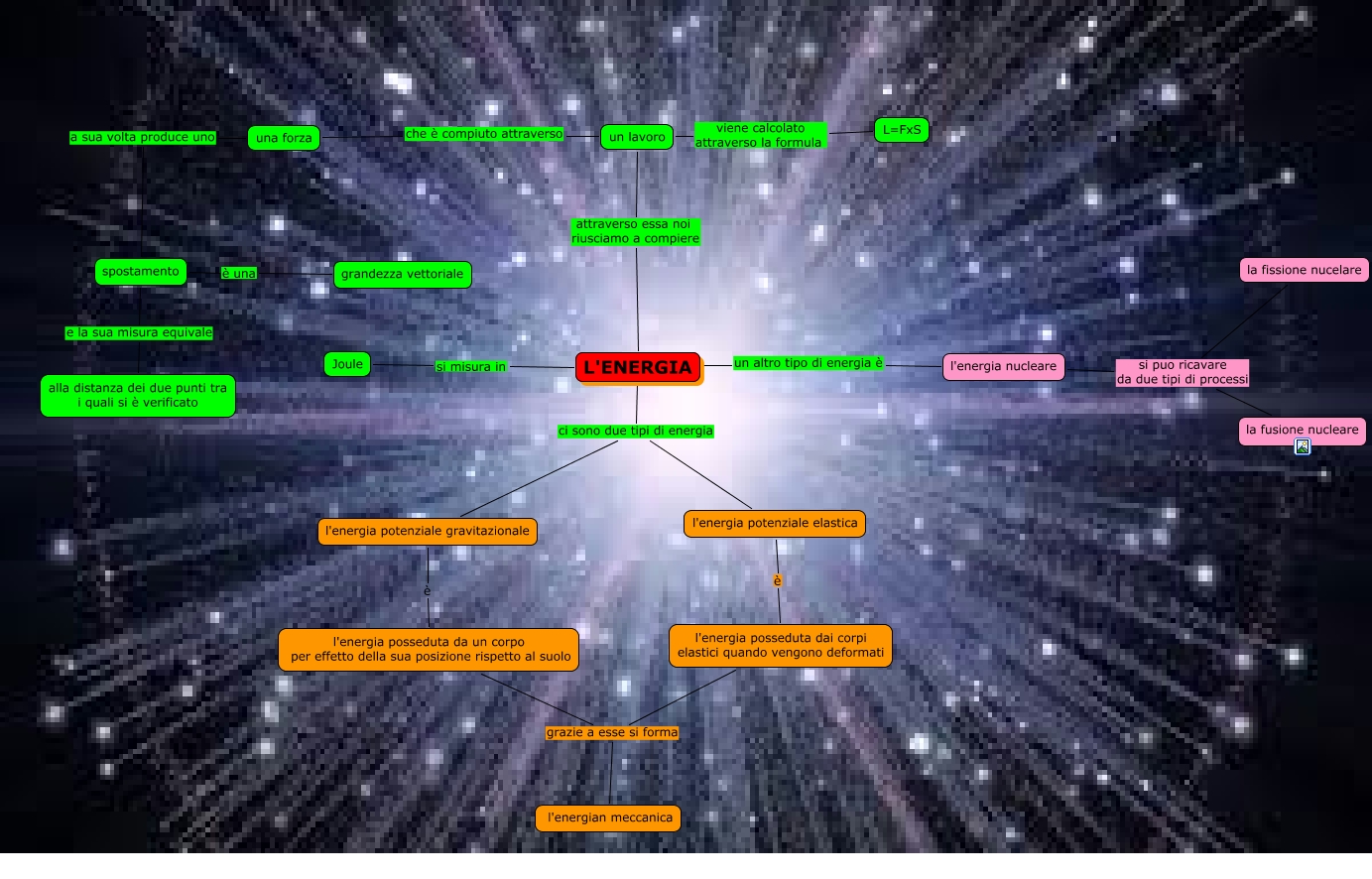 Questa Cmap, creata con IHMC CmapTools, contiene informazioni relative a: l'energia, l'energia posseduta dai corpi elastici quando vengono deformati grazie a esse si forma l'energian meccanica, l'energia nucleare si puo ricavare da due tipi di processi la fissione nucelare, L'ENERGIA si misura in Joule, L'ENERGIA ci sono due tipi di energia l'energia potenziale gravitazionale, L'ENERGIA attraverso essa noi riusciamo a compiere un lavoro, una forza a sua volta produce uno spostamento, l'energia posseduta da un corpo per effetto della sua posizione rispetto al suolo grazie a esse si forma l'energian meccanica, l'energia nucleare si puo ricavare da due tipi di processi la fusione nucleare, l'energia potenziale gravitazionale è l'energia posseduta da un corpo per effetto della sua posizione rispetto al suolo, un lavoro viene calcolato attraverso la formula L=FxS, spostamento è una grandezza vettoriale, l'energia potenziale elastica è l'energia posseduta dai corpi elastici quando vengono deformati, L'ENERGIA ci sono due tipi di energia l'energia potenziale elastica, L'ENERGIA un altro tipo di energia è l'energia nucleare, spostamento e la sua misura equivale alla distanza dei due punti tra i quali si è verificato, un lavoro che è compiuto attraverso una forza