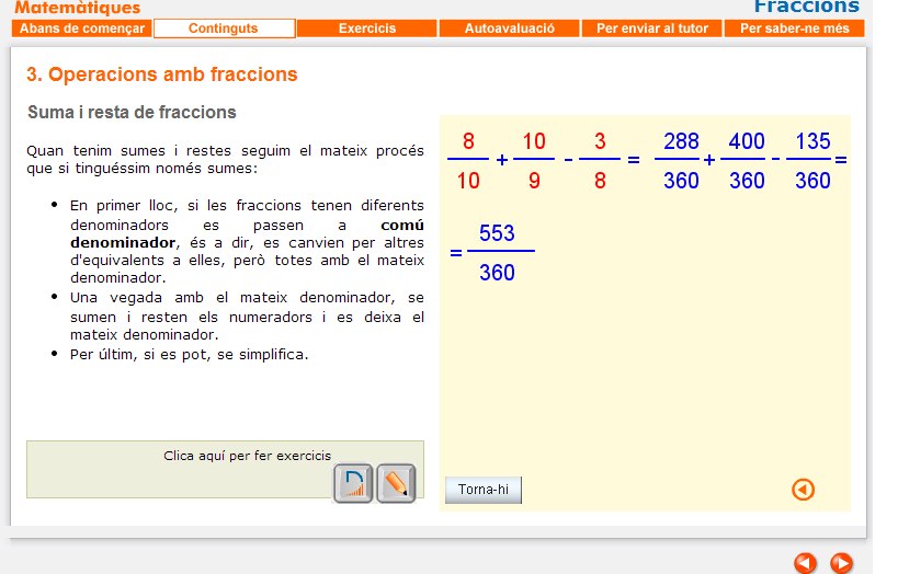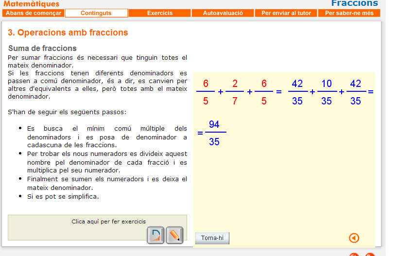 ELEMENTS - EXERCICI.png ENVIAR AL TUTOR.png FRACCIONS A LA NOSTRA VIDA.png PROJECTE PASTÍS DE FORMATGE.cmap T5·1·1 COM DIVISIÓ.png T5·1·2 ELEMENTS ELE NUM DENO.png T5·1·3 COM LLEGIR.png T5·1·5 RAÓ.png T5·2·2 PRODUCTES CREUATS.png T5·2·3 SIMPLIFICAR.png T5·2·3 SIMPLIFICAR 02.png T5·3·1 COMÚDENOMINADOR.png T5·3·2 SUMA DE FRACCIONS.png T5·3·2 SUMA DE FRACCIONS 02.png T5·3·3 SUMA I RESTA DE FRACCIONS.png T5·3·3 SUMA I RESTA DE FRACCIONS 02.png T5·3·7 EXEMPLES 02.png T5·4·1 EXERCICI 01.png T5 AUTOAVALUACIÓ 1.png T5 AUTOAVALUACIÓ 10.png T5 AUTOAVALUACIÓ 2.png T5 AUTOAVALUACIÓ 3.png T5 AUTOAVALUACIÓ 4.png T5 AUTOAVALUACIÓ 5.png T5 AUTOAVALUACIÓ 6.png T5 AUTOAVALUACIÓ 7.png T5 AUTOAVALUACIÓ 8.png T5 AUTOAVALUACIÓ 9.png T5 ENVIAR AL TUTOR CORRECCIÓ.png T5 ESCALES.png T5 EXÀMEN.odt T5 EXERCICIS DIVERSOS 1.png T5 EXERCICIS DIVERSOS 3.png T5 EXERCICIS DIVERSOS 4.png T5 EXERCICIS PROBLEMES AMB FRACCIONS - PROBLEMES.png T5 EXERCICIS PROBLEMES AMB FRACCIONS - TANGRAM.png T5 FRACCIONS.cmap T5 OPERADOR.png T5 OPERADOR 01.png T5 PARTS UNITAT.png T6 PROPORCIÓ·3.png