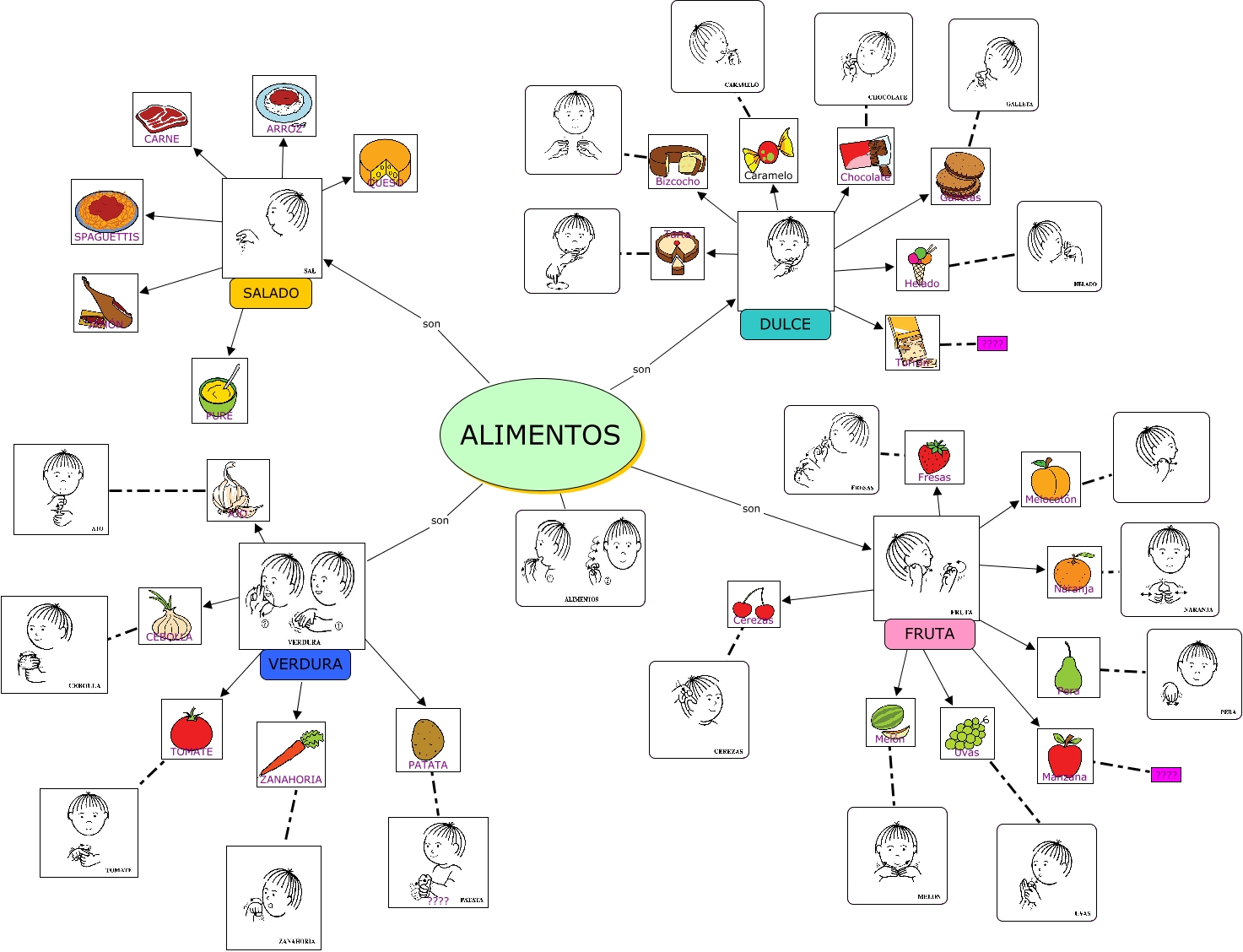 Este Cmap, tiene información relacionada con: Los alimentos, ???? PATATA, ???? QUESO, ???? Fresas, ???? Tarta, ???? VERDURA, ???? SPAGUETTIS, CEBOLLA ????, ALIMENTOS son, ???? Galletas, Fresas ????, Melocotón ????, ???? Caramelo, ???? PURÉ, ???? Chocolate, ???? SALADO, Cerezas ????, ???? Bizcocho, ???? Uvas, ALIMENTOS son, AJO ????