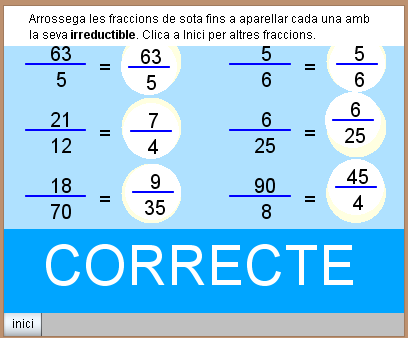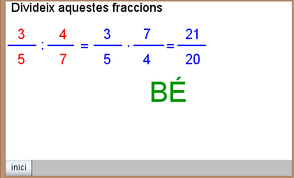 CG3 Projecte Pastís Formatge.cmap Com es llegeix una fracció.png el valor d'una fraccio T5.png escala.png FRACCIONS.cmap FRACCIONS EQUIBALENTS.png OPERACIONS.cmap PRODUCTES CREUATS T5.png rao.png T5.3.2 OPERACIONS FRACCIONS.png T5.3.3 SUMA.png T5.3.5 FRECCIÓ INVERSA.png T5.3.7.01.png T5.3.7.02.png T5.3.7.03.png T5.3.7.04.png T5.3.7.05.png T5.3.7.06.png T5.3.7.07.png T5.3.7.08.png T5.3.7.09.png T5.3.7.10.png T5.3.7 DIVISIÓ.png T5.3. DIVISIÓ.png T5.4.Fr OPERADOR 0.1.png T5.ENVIAR AL TUTOR.png T5.ENVIAR AL TUTOR CORRECCIÓ.png T5.EXERCICIS.01.png T5.EXERCICIS.02.png T5.EXERCICIS.03.png T5.EXERCICIS.04.png T5.EXERCICIS.suma.png T5 2.3 SIMPLIFICACIÓ 02.png T5 23. SIMPLIFICACIÓ 0.2.png T5 Autoavaluació 01.png T5 Autoavaluació 02.png T5 Autoavaluació 03.png T5 Autoavaluació 04.png T5 Autoavaluació 04 error.png T5 Autoavaluació 05.png T5 Autoavaluació 06.png T5 Autoavaluació 07.png T5 Autoavaluació 07 error.png T5 Autoavaluació 08.png T5 Autoavaluació 09.png T5 Autoavaluació 10.png T5 COM OPERADOR.png T5 DIVISIO D'UNA FRACCIÓ.png T5 ELEMENTS D'UNA FRACCIÓ.png T5 FRACCIONS EQUIVALENTS.png T5 LES FRACCIONS DE LA NOSTRA VIDA.png T5 ORDENACIÓ.png T5 PART D'UNA UNITAT.png T5 Passar d'una fracció a un decimal.png T5 PRODUCTES CREUATS.png T5 SIMPLIFICAR UNA FRECCIÓ.png T6.png