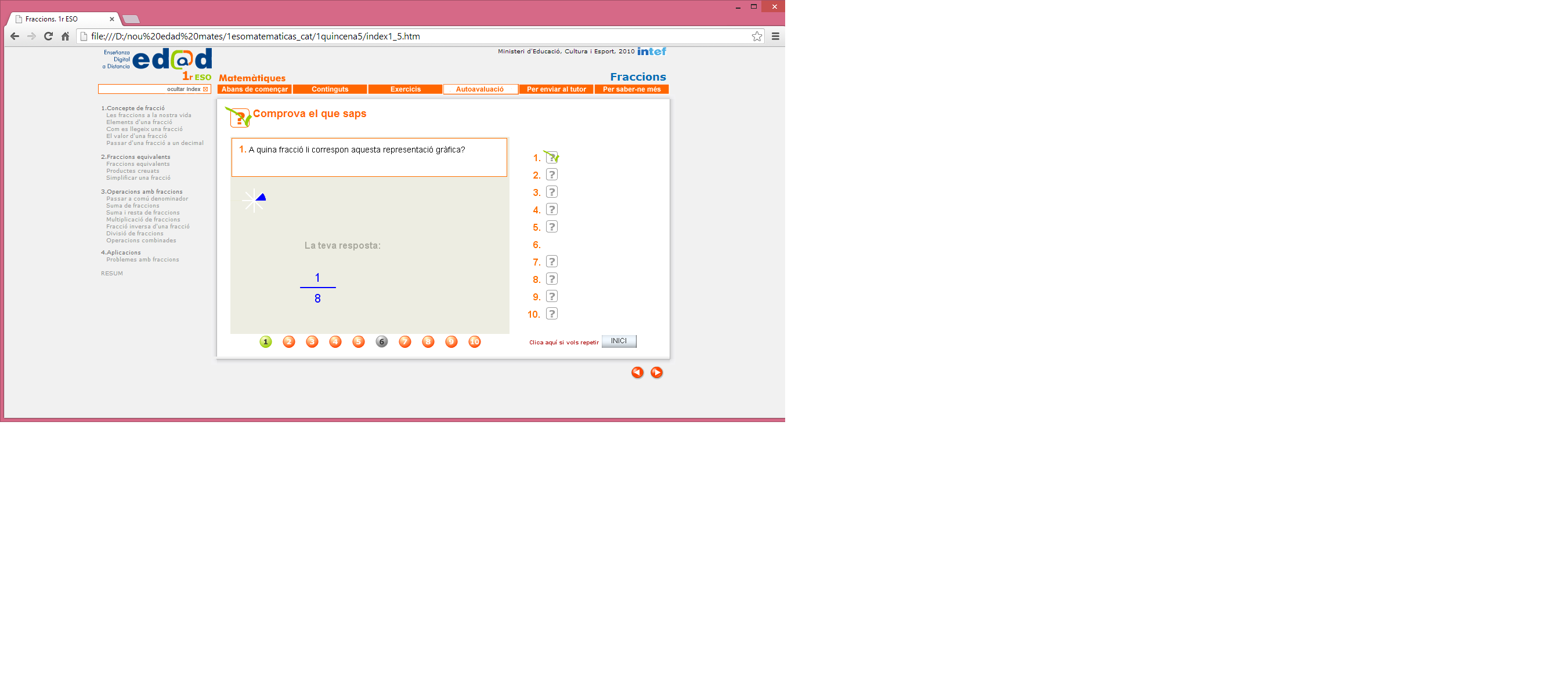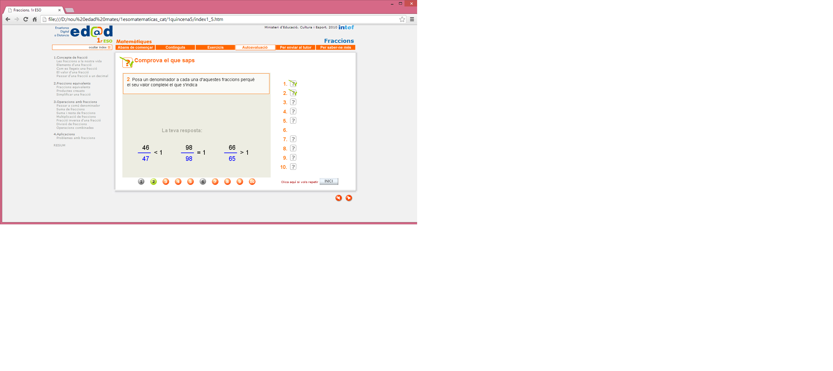 autovaluació 1 (fraccions).png autovaluació 1 fraccions la.png autovaluació 2 (fraccions).png autovaluació 2 (fraccions).png la.png autovaluació 3 fraccions.png autovaluació 4 (fraccions).png autovaluació 5 fraccions la.png autovaluació 6 (fraccions).png la.png autovaluació 7(fraccions).png la.png autovaluació 8 (fraccions).png la.png autovaluació fraccions.png CBG Progecte passtís formatge.cmap Copia de autovaluació 1 (fraccions).png Copia de autovaluació 1 fraccions la.png Copia de autovaluació 2 (fraccions).png Copia de autovaluació 2 (fraccions).png la.png divisió.png DIVISIO INVERSA.png elements.png elements 1.png el valor d'una fracció.png enviar el tutor.png1.png enviar el tutor correcció.png escales.png escales 1.png fraccions.png fraccions equivalents.png LECTURA.png OPERACIONS COMBINADES.png OPERADOR.png ordenar.png parts d'una unitat.png percentatge.png percentatge A.png percentatges 2 - copia.png productes creuats 01.png raó.png SIMPLIFICACIÓ02.png SIMPLIFICACION.png SUMA I RESTA.png t5.3.10.png T5.3.1 COMÚ DENOMINADOR.png t5.3.1 exercicis.png T5.3.2.SUMApng.png t5.3.2 exercicis.png t5.3.3.png t5.3.5.png t5.3.6.png t5.3.7.png t5.3.8.png t5.3.9.png t5.exercicis04.png t5exercicis divisió.png t5 fraccion 1cg3.cmap T5 OPERACIO CG3.cmap T5PRODUCTES I DIVISIONS.png T5PRODUCTES I DIVISIONS2.png