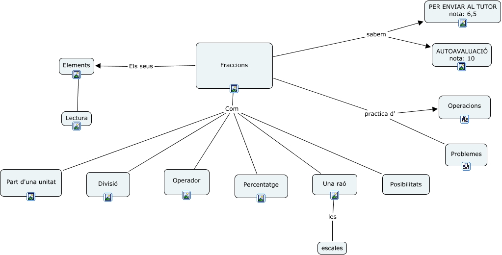 Aquest mapa conceptual conté informació relacionada amb: T5 FRACCIONS 1C G2, Fraccions practica d' Problemes, Fraccions Com Divisió, Elements ???? Lectura, Fraccions sabem AUTOAVALUACIÓ nota: 10, Fraccions Els seus Elements, Fraccions Com Part d'una unitat, Fraccions Com Posibilitats, Fraccions Com Una raó, Fraccions Com Percentatge, Fraccions Com Operador, Una raó les escales, Fraccions practica d' Operacions, Fraccions sabem PER ENVIAR AL TUTOR nota: 6,5