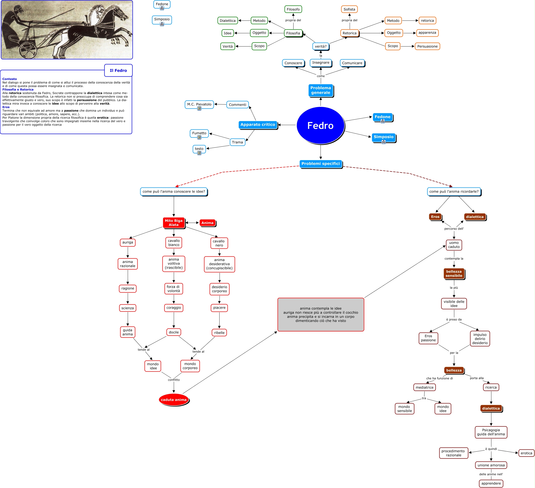 Questa Cmap, creata con IHMC CmapTools, contiene informazioni relative a: Fedro, anima contempla le idee auriga non riesce più a controllare il cocchio anima precipita e si incarna in un corpo dimenticando ciò che ha visto uomo caduto, Mito Biga Alata cavallo bianco, Mito Biga Alata Anima, bellezza sensibile la più visibile delle idee, Metodo retorica, visibile delle idee è preso da Eros passione, Problema generale come Comunicare, Filosofia Metodo, Psicagogia guida dell'anima è quindi unione amorosa, ricerca dialettica, bellezza che ha funzione di mediatrice, ragione scienza, Retorica Metodo, Problema generale come Conoscere, docile tende al mondo idee, anima volitiva (irascibile) forza di volontà, ribelle tende al mondo corporeo, Retorica propria del Sofista, Fedro Fedone, anima razionale ragione