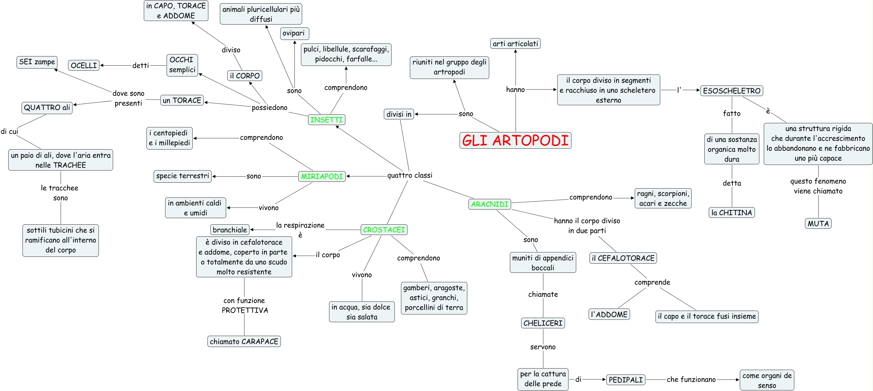 Questa Cmap, creata con IHMC CmapTools, contiene informazioni relative a: gli artopodi, INSETTI possiedono un TORACE, una struttura rigida che durante l'accrescimento lo abbandonano e ne fabbricano uno più capace questo fenomeno viene chiamato MUTA, è diviso in cefalotorace e addome, coperto in parte o totalmente da uno scudo molto resistente con funzione PROTETTIVA chiamato CARAPACE, divisi in quattro classi ARACNIDI, INSETTI possiedono OCCHI semplici, un paio di ali, dove l'aria entra nelle TRACHEE le tracchee sono sottili tubicini che si ramificano all'interno del corpo, MIRIAPODI comprendono i centopiedi e i millepiedi, PEDIPALI che funzionano come organi de senso, ARACNIDI hanno il corpo diviso in due parti il CEFALOTORACE, per la cattura delle prede di PEDIPALI, GLI ARTOPODI sono divisi in, il corpo diviso in segmenti e racchiuso in uno scheletero esterno l' ESOSCHELETRO, di una sostanza organica molto dura detta la CHITINA, MIRIAPODI vivono in ambienti caldi e umidi, GLI ARTOPODI sono riuniti nel gruppo degli artropodi, INSETTI sono animali pluricellulari più diffusi, INSETTI sono ovipari, ESOSCHELETRO è una struttura rigida che durante l'accrescimento lo abbandonano e ne fabbricano uno più capace, divisi in quattro classi MIRIAPODI, CROSTACEI il corpo è diviso in cefalotorace e addome, coperto in parte o totalmente da uno scudo molto resistente