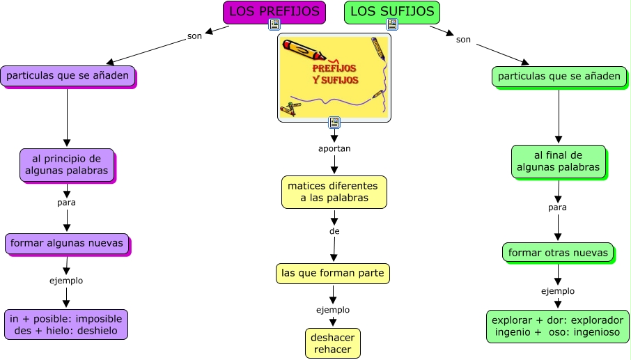 Este Cmap, tiene información relacionada con: TEMA 9 Los prefijos y los sufijos, LOS PREFIJOS son particulas que se añaden, las que forman parte ejemplo deshacer rehacer, particulas que se añaden ???? al principio de algunas palabras, aportan matices diferentes a las palabras, formar otras nuevas ejemplo explorar + dor: explorador ingenio + oso: ingenioso, formar algunas nuevas ejemplo in + posible: imposible des + hielo: deshielo, al final de algunas palabras para formar otras nuevas, LOS SUFIJOS son particulas que se añaden, al principio de algunas palabras para formar algunas nuevas, matices diferentes a las palabras de las que forman parte, particulas que se añaden ???? al final de algunas palabras