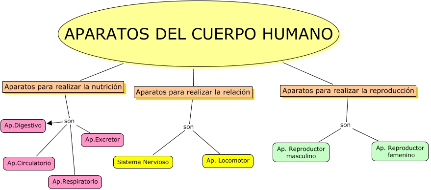 Este Cmap, tiene información relacionada con: LOS APARATOS DEL CUERPO HUMANO, Aparatos para realizar la relación son Ap. Locomotor, Aparatos para realizar la relación son Sistema Nervioso, Aparatos para realizar la nutrición son Ap.Digestivo, Aparatos para realizar la reproducción son Ap. Reproductor femenino, APARATOS DEL CUERPO HUMANO ???? Aparatos para realizar la nutrición, Aparatos para realizar la nutrición son Ap.Circulatorio, APARATOS DEL CUERPO HUMANO ???? Aparatos para realizar la reproducción, APARATOS DEL CUERPO HUMANO ???? Aparatos para realizar la relación, Aparatos para realizar la nutrición son Ap.Excretor, Aparatos para realizar la nutrición son Ap.Respiratorio, Aparatos para realizar la reproducción son Ap. Reproductor masculino