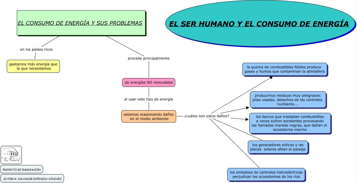 Este Cmap, tiene información relacionada con: EL SER HUMANO Y EL CONSUMO DE ENERG�?A, estamos ocasionando daños en el medio ambiente ¿cuáles son estos daños? los embalses de centrales hidroeléctricas perjudican los ecosistemas de los ríos, estamos ocasionando daños en el medio ambiente ¿cuáles son estos daños? los generadores eólicos y las placas solares afean el paisaje, EL CONSUMO DE ENERG�?A Y SUS PROBLEMAS procede principalmente de energías NO renovables, estamos ocasionando daños en el medio ambiente ¿cuáles son estos daños? los barcos que trasladan combustibles a veces sufren accidentes provocando las llamadas mareas negras, que dañan el ecosistema marino, estamos ocasionando daños en el medio ambiente ¿cuáles son estos daños? producimos residuos muy peligrosos: pilas usadas, desechos de las centrales nucleares...., estamos ocasionando daños en el medio ambiente ¿cuáles son estos daños? la quema de combustibles fósiles produce gases y humos que contaminan la atmósfera, de energías NO renovables al usar este tipo de energía estamos ocasionando daños en el medio ambiente, EL CONSUMO DE ENERG�?A Y SUS PROBLEMAS en los países ricos gastamos más energía que la que necesitamos