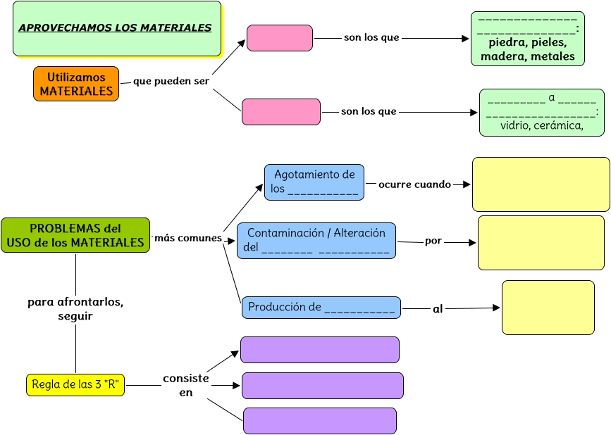 Este Cmap, tiene información relacionada con: APROVECHAMOS LOS MATERIALES-MUDO, Producción de ___________ al, PROBLEMAS del USO de los MATERIALES más comunes Contaminación / Alteración del ________ ___________, Utilizamos MATERIALES que pueden ser, Regla de las 3 "R" consiste en, son los que _________ a ______ _________________: vidrio, cerámica,, Agotamiento de los ___________ ocurre cuando, Utilizamos MATERIALES que pueden ser, son los que ______________ ______________: piedra, pieles, madera, metales, Regla de las 3 "R" consiste en, PROBLEMAS del USO de los MATERIALES más comunes Agotamiento de los ___________, Regla de las 3 "R" consiste en, PROBLEMAS del USO de los MATERIALES más comunes Producción de ___________, PROBLEMAS del USO de los MATERIALES para afrontarlos, seguir Regla de las 3 "R", Contaminación / Alteración del ________ ___________ por
