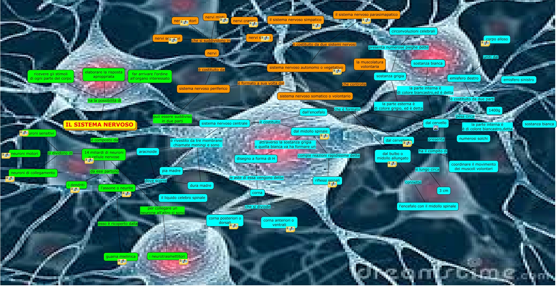 Questa Cmap, creata con IHMC CmapTools, contiene informazioni relative a: il sistema nervoso, dal cervello è costituito da due parti emisfero destro, nervi che si suddividono in nervi sensitivi, dal bulbo o midollo allungato è lungo circa 3 cm, 14 miliardi di neuroni o cellule nervose si dividono in neuroni motori, dal cervello la parte esterna è di colore grigio, ed è detta sostanza grigia, sistema nervoso centrale è costituito dal midollo spinale, sistema nervoso periferico è formato a sua volta dal sistema nervoso somatico o volontario, sistema nervoso autonomo o vegetativo è costituito da due sistemi nervosi il sistema nervoso simpatico, nervi che si suddividono in nervi motori, dura madre dove scorre il liquido celebro spinale, aracnoide dove scorre il liquido celebro spinale, IL SISTEMA NERVOSO è composto da 14 miliardi di neuroni o cellule nervose, dall'encefalo che è formato dal bulbo o midollo allungato, IL SISTEMA NERVOSO può essere suddiviso in due parti sistema nervoso periferico, disegno a forma di H le aste di essa vengono dette corna, dal bulbo o midollo allungato connette l'encefalo con il midollo spinale, sistema nervoso periferico è costituito da nervi, sistema nervoso centrale è rivestito da tre membrane chiamate meningi e sono aracnoide, IL SISTEMA NERVOSO ha la possibilità di elaborare la risposta aproppriata, dal cervello pesa circa 1400g