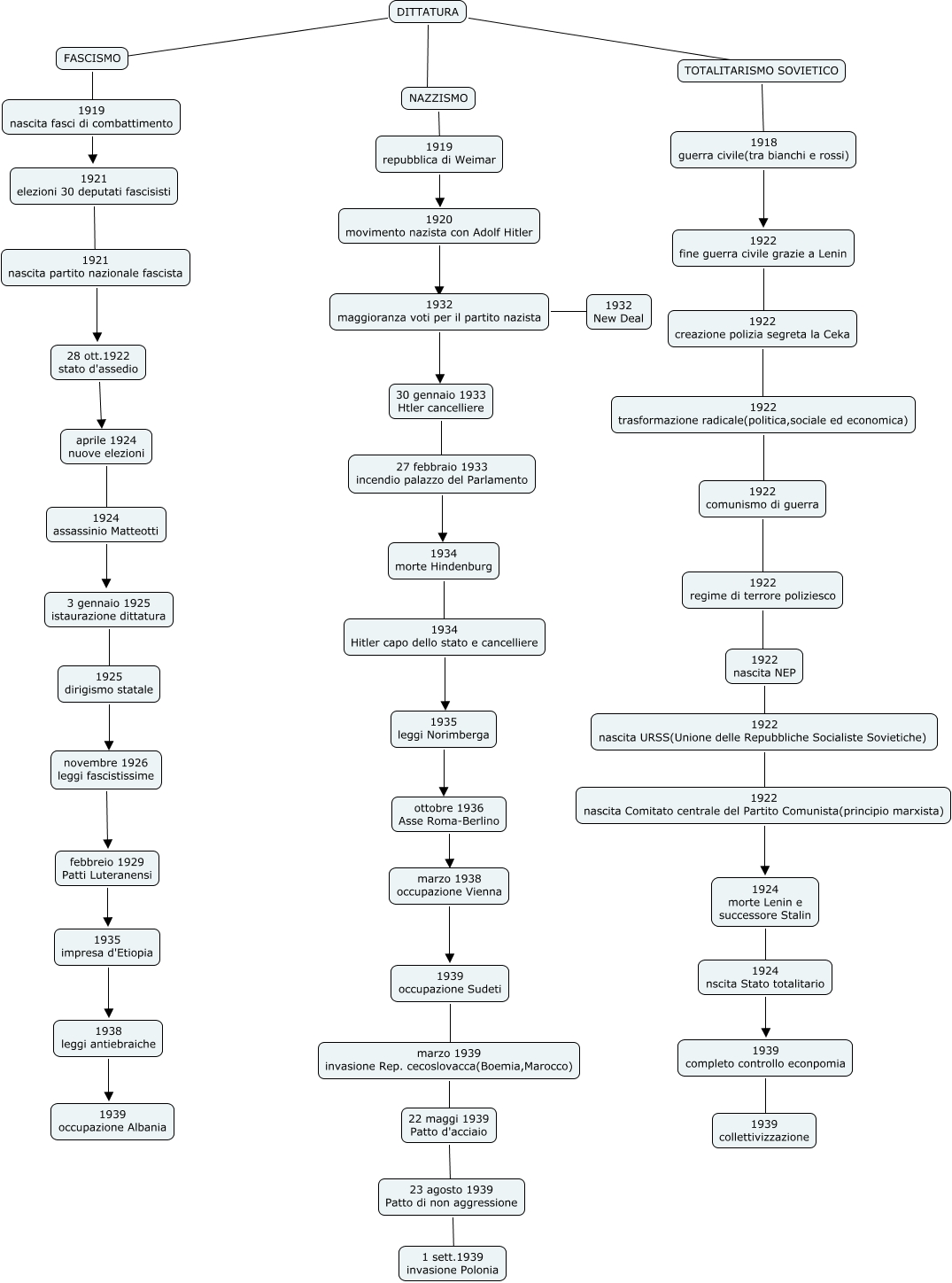 Questa Cmap, creata con IHMC CmapTools, contiene informazioni relative a: FASCISMO E NAZISMO, 1932 maggioranza voti per il partito nazista ???? 30 gennaio 1933 Htler cancelliere, 3 gennaio 1925 istaurazione dittatura ???? 1925 dirigismo statale, 30 gennaio 1933 Htler cancelliere ???? 27 febbraio 1933 incendio palazzo del Parlamento, 1939 occupazione Sudeti ???? marzo 1939 invasione Rep. cecoslovacca(Boemia,Marocco), marzo 1939 invasione Rep. cecoslovacca(Boemia,Marocco) ???? 22 maggi 1939 Patto d'acciaio, 1934 morte Hindenburg ???? 1934 Hitler capo dello stato e cancelliere, 27 febbraio 1933 incendio palazzo del Parlamento ???? 1934 morte Hindenburg, 1935 leggi Norimberga ???? ottobre 1936 Asse Roma-Berlino, 1921 elezioni 30 deputati fascisisti ???? 1921 nascita partito nazionale fascista, 1924 assassinio Matteotti ???? 3 gennaio 1925 istaurazione dittatura, novembre 1926 leggi fascistissime ???? febbreio 1929 Patti Luteranensi, NAZZISMO ???? 1919 repubblica di Weimar, DITTATURA ???? NAZZISMO, 1934 Hitler capo dello stato e cancelliere ???? 1935 leggi Norimberga, 1922 nascita URSS(Unione delle Repubbliche Socialiste Sovietiche) ???? 1922 nascita Comitato centrale del Partito Comunista(principio marxista), 1924 morte Lenin e successore Stalin ???? 1924 nscita Stato totalitario, 28 ott.1922 stato d'assedio ???? aprile 1924 nuove elezioni, 1919 nascita fasci di combattimento ???? 1921 elezioni 30 deputati fascisisti, 1925 dirigismo statale ???? novembre 1926 leggi fascistissime, 1938 leggi antiebraiche ???? 1939 occupazione Albania