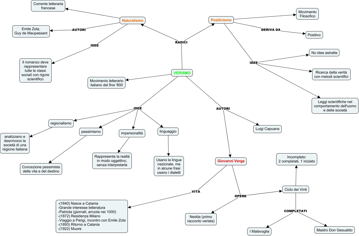 Questa Cmap, creata con IHMC CmapTools, contiene informazioni relative a: Letteratura - Verismo e Verga, Ciclo dei Vinti Incompleto: 2 completati, 1 iniziato, Naturalismo AUTORI Emile Zola, Guy de Maupassant, VERISMO IDEE impersonalità, Positivismo IDEE No idee astratte, Giovanni Verga OPERE Nedda (primo racconto verista), Giovanni Verga OPERE Ciclo dei Vinti, Positivismo Movimento Filosofico, Naturalismo IDEE Il romanzo deve rappresentare tutte le classi sociali con rigore scientifico, Positivismo IDEE Leggi scientifiche nel comportamento dell'uomo e della società, Ciclo dei Vinti COMPLETATI Mastro Don Gesualdo, Naturalismo Corrente letteraria francese, VERISMO IDEE linguaggio, linguaggio Usano la lingua nazionale, ma in alcune frasi usano i dialetti, Positivismo DERIVA DA Positivo, VERISMO IDEE pessimismo, regionalismo analizzano e descrivono la società di una regione italiana, impersonalità Rappresenta la realtà in modo oggettivo, senza interpretarla, pessimismo Concezione pessimista della vita e del destino, VERISMO AUTORI Luigi Capuana, VERISMO IDEE regionalismo